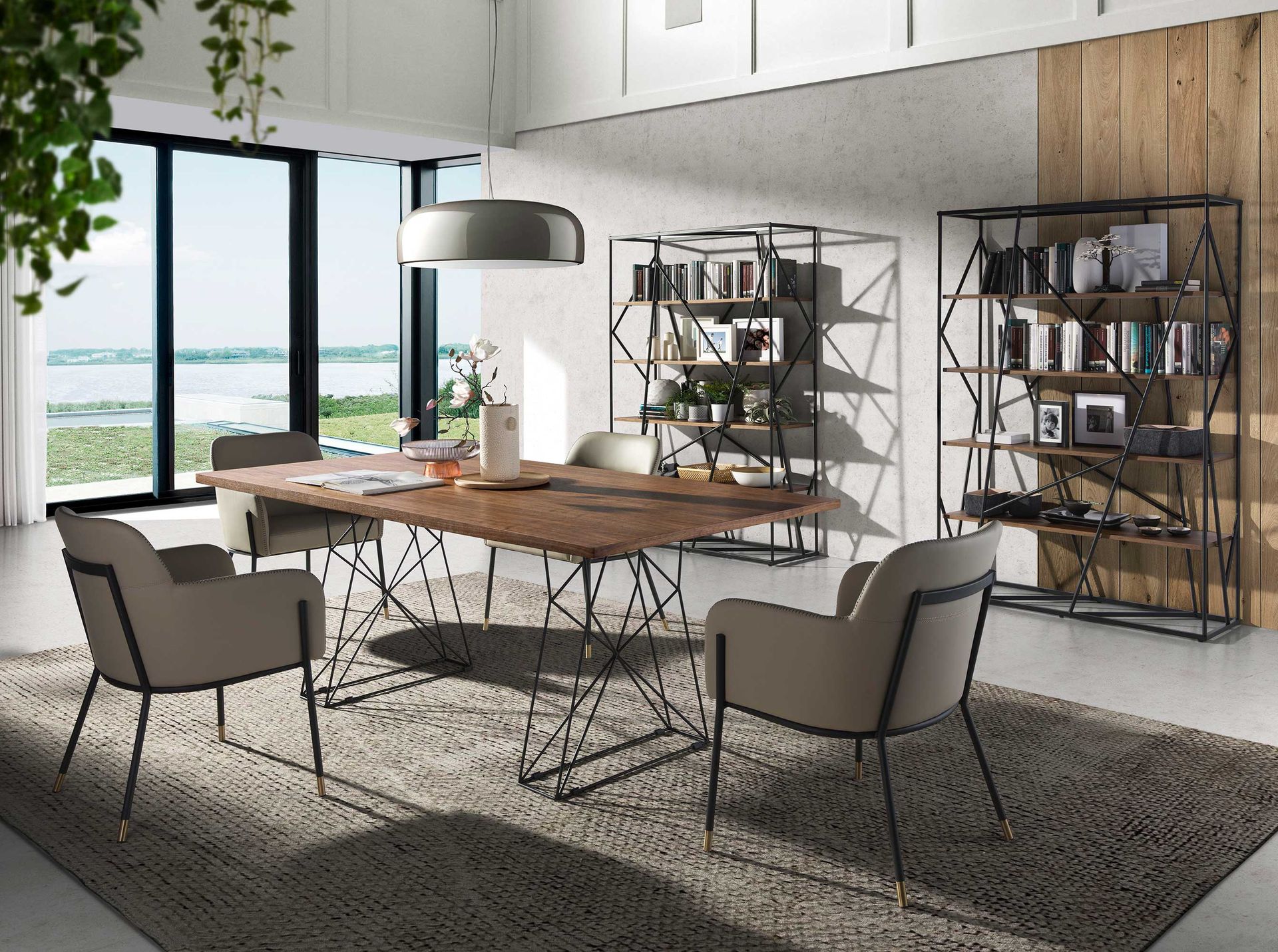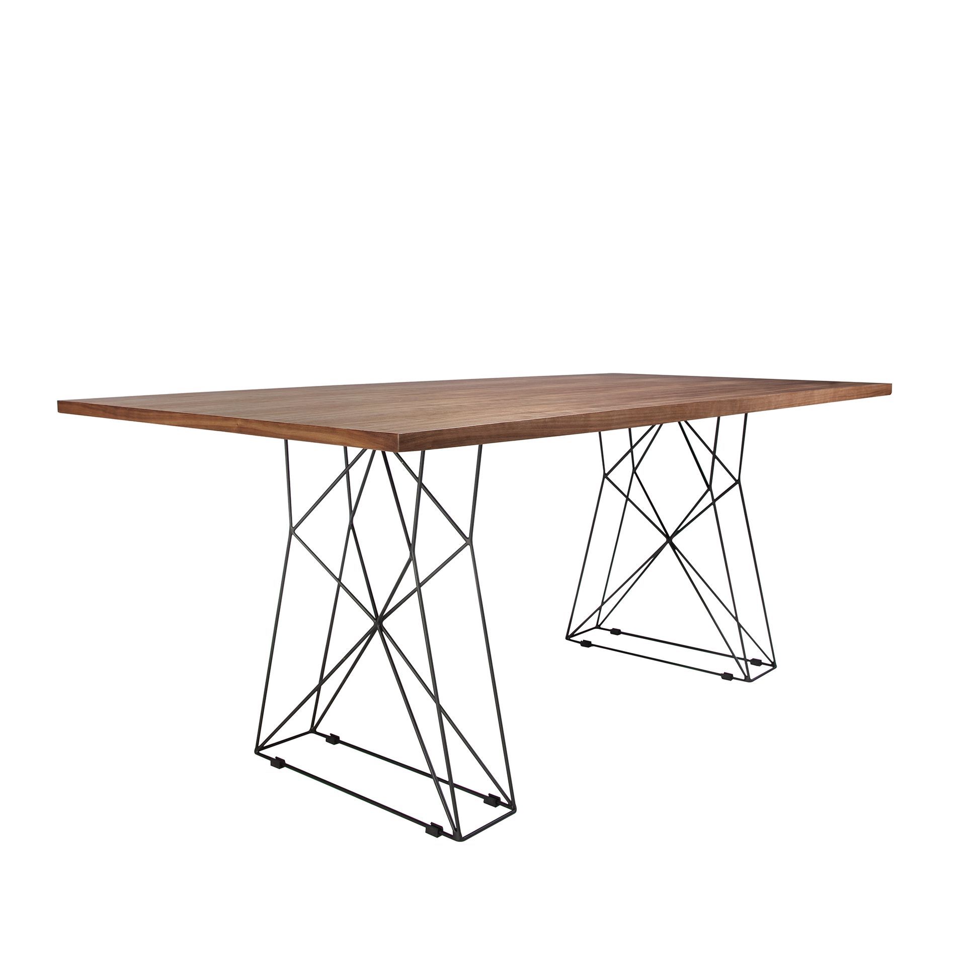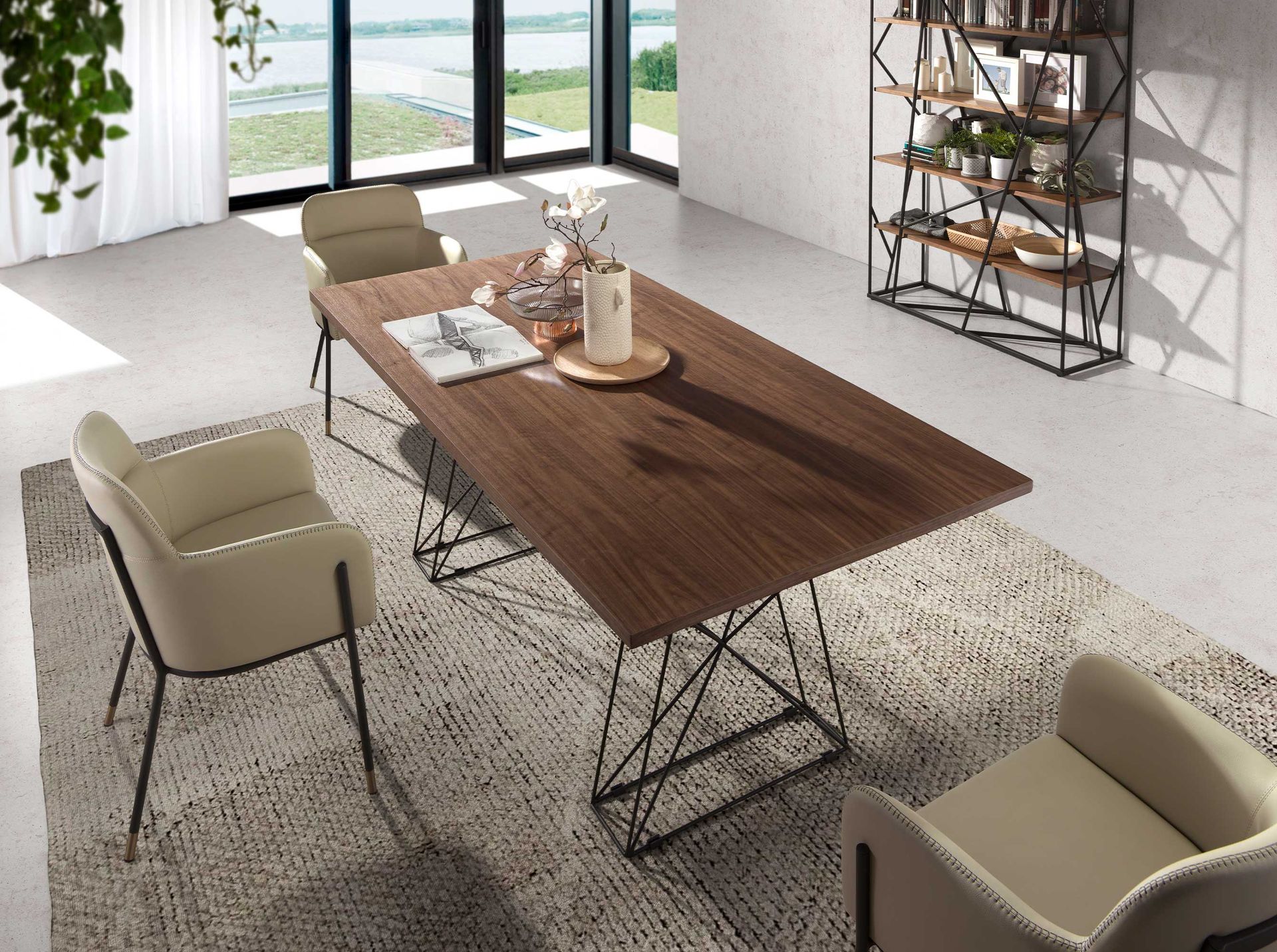 Mesa comedor rectangular nogal y acero negro modelo 1107 Angel Cerdá S.L.Mesa comedor rectangular de diseño moderno con tapa fija de madera chapada en nogal natural. Sus originales patas de acero inoxidable color negro son elementos claves a destacar de su diseño.Medidas del producto: 200 x 95 x 76 cm.- Su tapa de madera chapada en nogal natural de 0,5 mm de espesor es resistente y duradera, ofreciendo además, un toque moderno y elegante al ambiente. – La originalidad de sus patas aúnan el estilo más vanguardista de nuestra marca con la mayor calidad y comodidad para sus comensales. – El perfil de la tapa recto de esta mesa de comedor aporta, gracias a su diseño lineal, el toque de vanguardia que busca para su comedor. – La fabricación en materiales nobles, así como su diseño de estilo moderno, la convierten en una opción ideal para transmitir su carácter y personalidad más vanguardista a través de su comedor. – Apta para un máximo de 8 comensales.