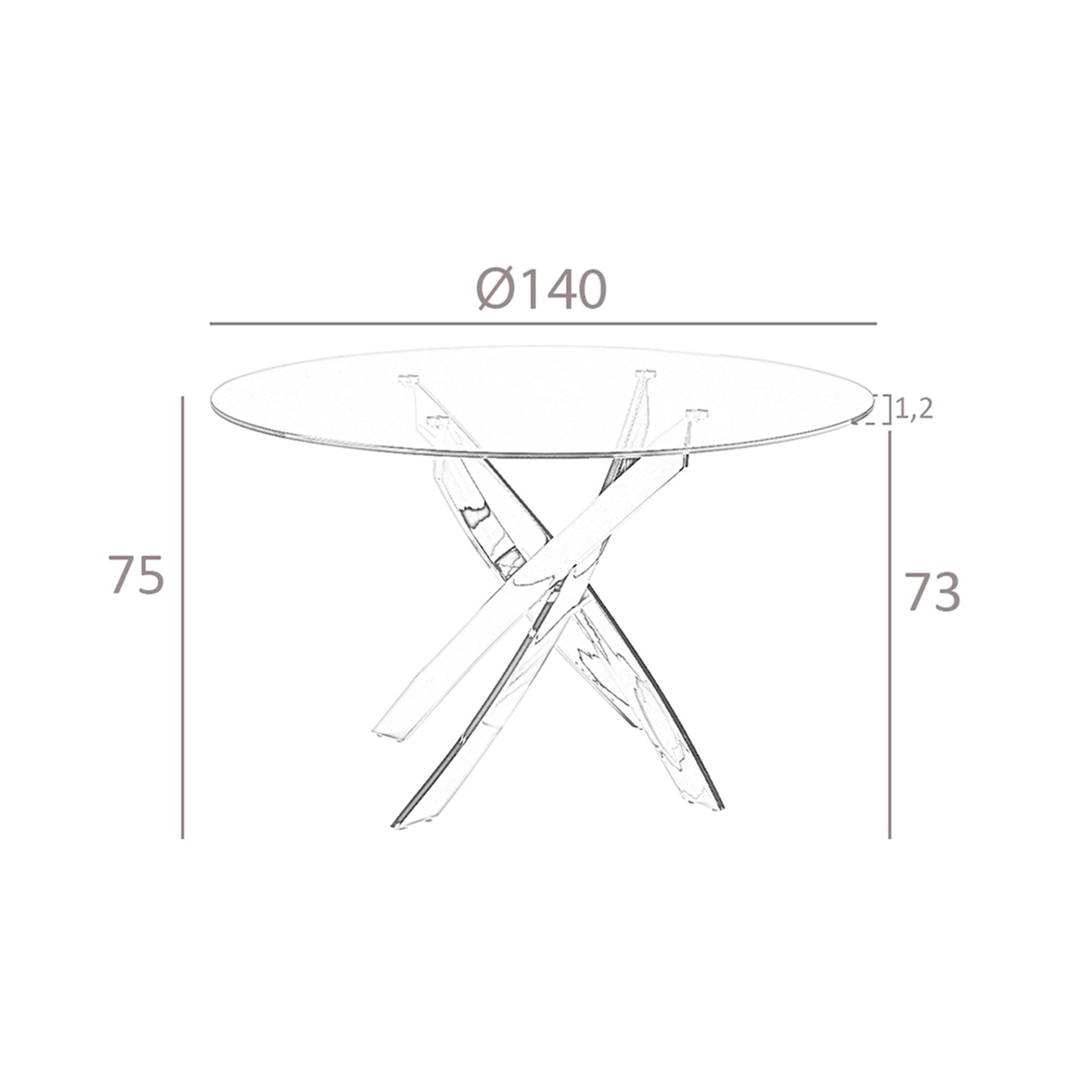 Mesa comedor redonda cristal templado y acero cromado modelo 1061-Ø140 Angel Cerdá S.L.Mesa comedor redonda de diseño moderno con tapa fija de cristal templado. Sus originales patas de acero inoxidable cromado son elementos claves a destacar de su diseño.Medidas del producto: Ø140 x 75 cm.- Su tapa de cristal templado de 12 mm de espesor es resistente, duradera, y favorece la sensación de amplitud en el espacio. – La originalidad de sus patas aúnan el estilo más vanguardista de nuestra marca con la mayor calidad y comodidad para sus comensales. – El perfil de la tapa pulido de esta mesa de comedor ofrece un acabado de alta calidad, siendo además, sinónimo de comodidad y elegancia. – Si busca la mesa comedor perfecta para tu hogar, esta es una opción ideal para aunar el toque moderno y de vanguardia que necesitas, con la mayor calidad y funcionalidad. – Apta para un máximo de 6 comensales.