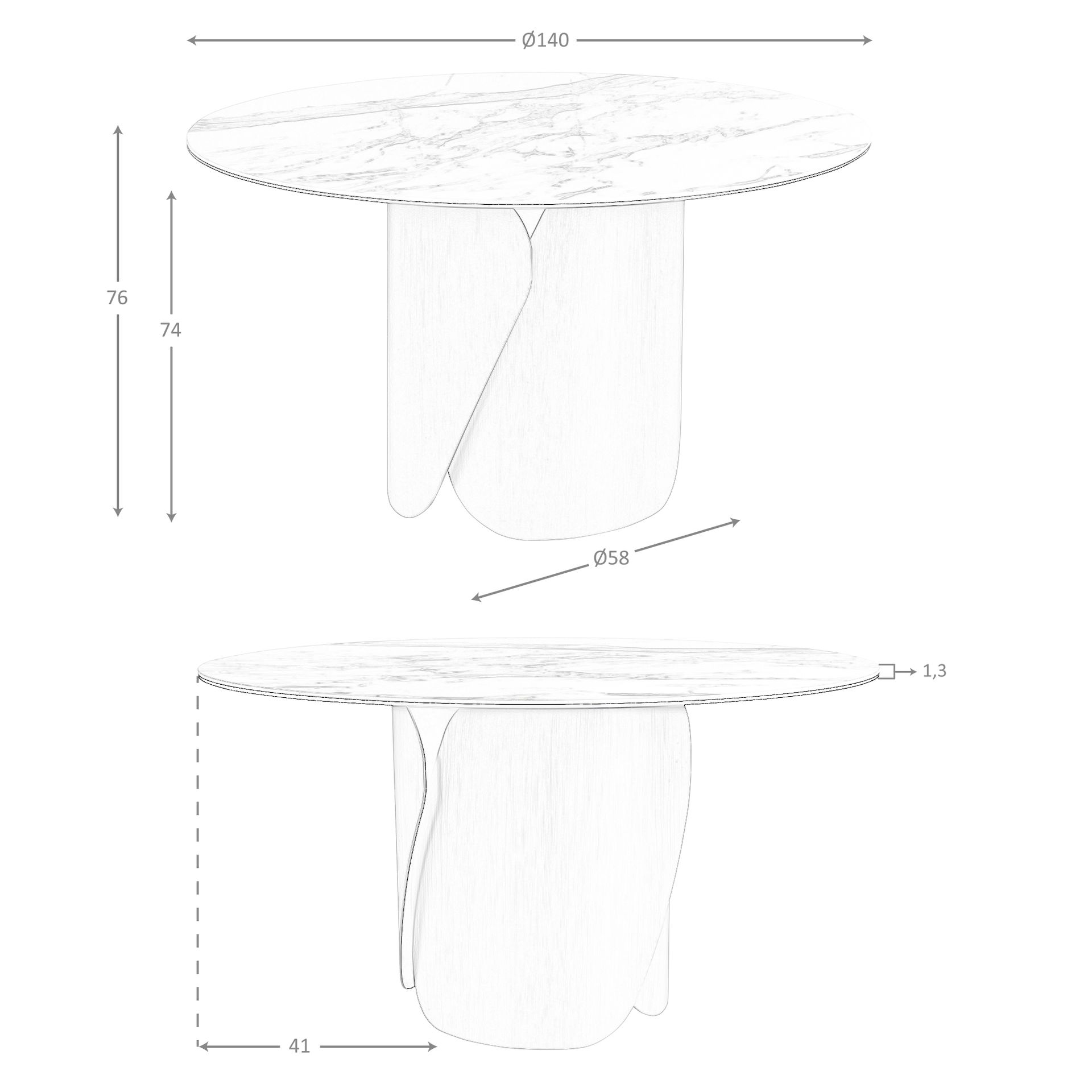 Mesa comedor redonda mármol porcelánico y acero color bronce modelo 1182 Angel Cerdá S.L.Mesa comedor redonda de diseño moderno con tapa fija de mármol porcelánico blanco con vetas en tonalidades grises y detalles en óxido en acabado brillo. Sus originales patas de acero inoxidable color bronce son elementos claves a destacar de su diseño.Medidas del producto: Ø140 x 76 cm.- Su tapa de mármol porcelánico es resistente y duradera, ofreciendo además un toque de vanguardia y elegancia al ambiente. – La originalidad de su estructura aúna modernidad y robustez, así como la mayor comodidad para sus comensales. – El perfil de la tapa pulido de esta mesa de comedor ofrece un acabado de alta calidad, siendo además, sinónimo de comodidad y elegancia. – Si busca la mesa comedor perfecta para tu hogar, esta es una opción ideal para aunar el toque moderno y de vanguardia que necesitas, con la mayor calidad y funcionalidad. – Apta para un máximo de 6 comensales.