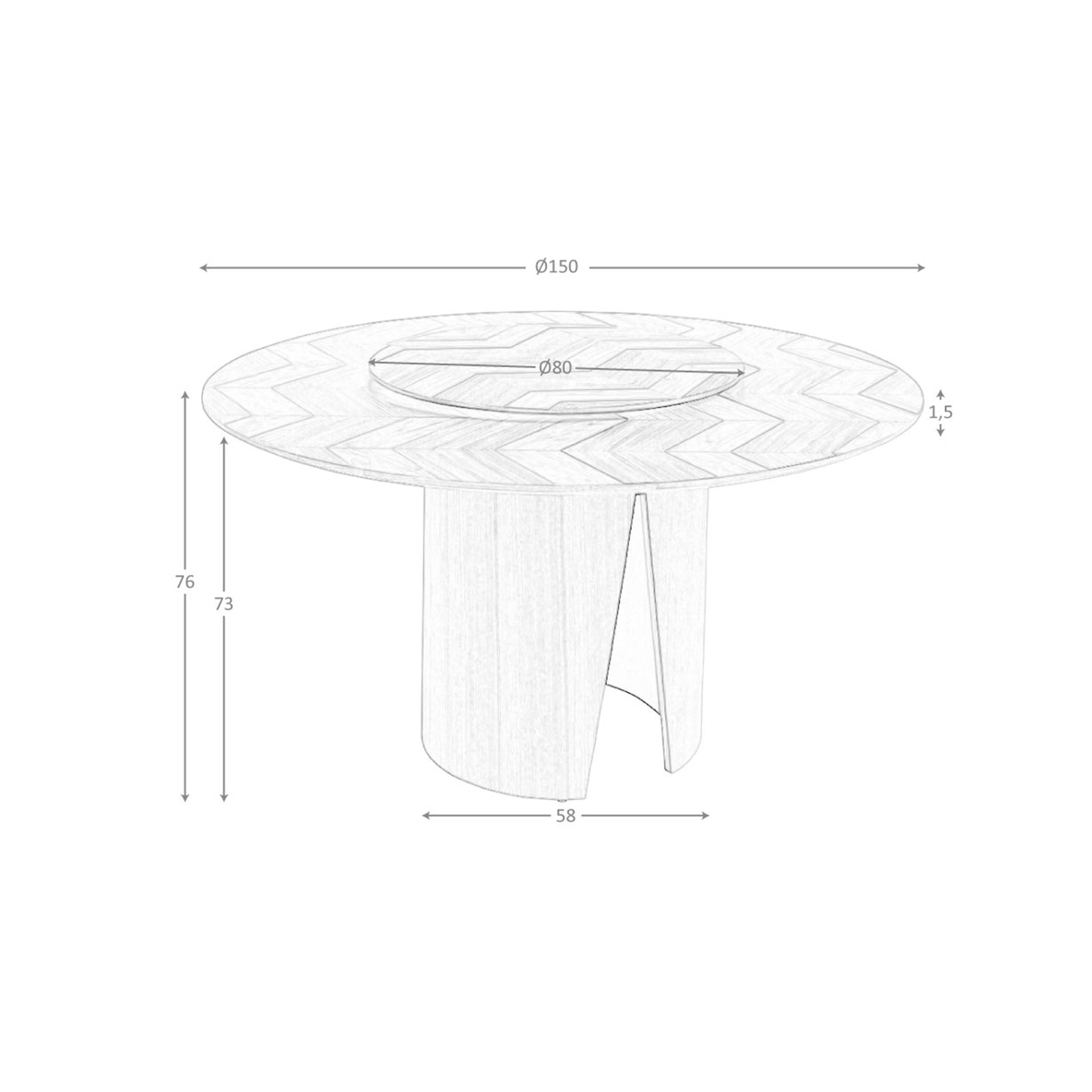 Mesa comedor redonda nogal modelo 1130 Angel Cerdá S.L.Mesa comedor redonda de diseño moderno con tapa fija y estructura de madera chapada en nogal natural. Una mesa perfecta para aportar luminosidad y vanguardia a tu cocina, salón o comedor.Medidas del producto: Ø150 x 76 cm.- Su tapa de madera chapada en nogal natural de 0,5 mm de espesor es resistente y duradera, ofreciendo además, un toque moderno y elegante al ambiente. – La originalidad de su estructura aúna modernidad y robustez, así como la mayor comodidad para sus comensales. – El perfil de la tapa biselado de esta mesa de comedor ofrece la máxima calidad en acabado y comodidad. – La fabricación en materiales nobles, así como su diseño de estilo moderno, la convierten en una opción ideal para transmitir su carácter y personalidad más vanguardista a través de su comedor. – Apta para un máximo de 6 comensales. – Su original centro giratorio extraíble, permitirá que todos los comensales puedan acceder de forma cómoda y práctica a los platos en la mesa. Además, el bonito diseño entrelazado de la madera en forma de zigzag la convierte en una pieza especial y única para su hogar.