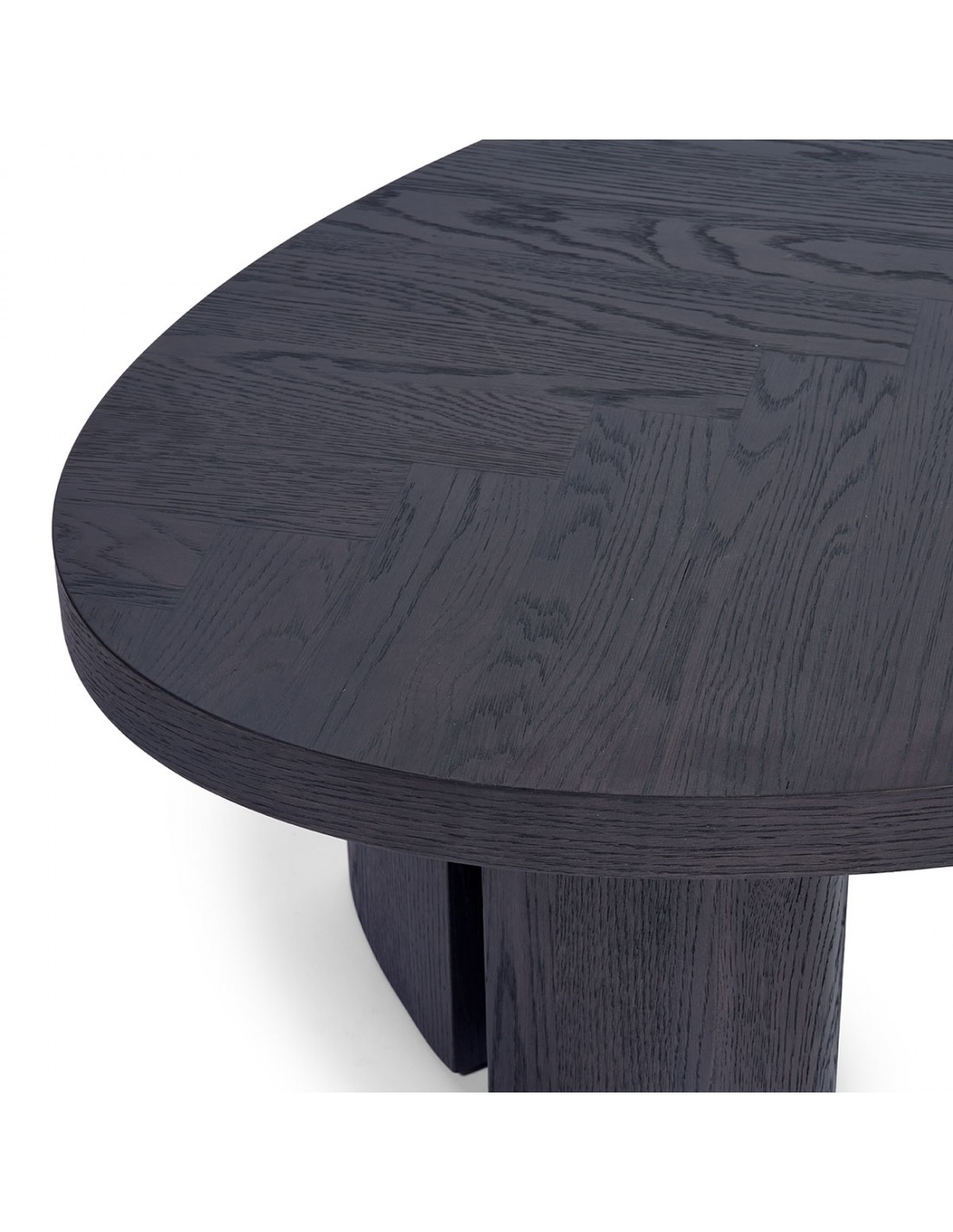 Con nuestra mesa de centro ovalada en roble black brown, llevas la elegancia a otro nivel. Sus patas, ubicadas en los extremos y con una abertura única en el tablero, aportan un toque original y contemporáneo, mientras que la calidad de la madera asegura durabilidad y distinción. Esta pieza, con acabados artesanales y materiales naturales, es el complemento perfecto para proyectos que buscan sofisticación y lujo. Su diseño versátil encaja con cualquier estilo, convirtiéndola en el elemento central que tus clientes. También disponible en mesa de comedor.