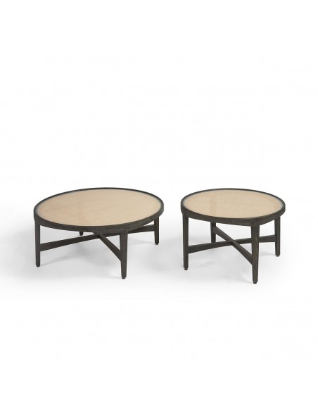 Descubre nuestra nueva mesa de centro redonda en roble oscuro, destacada por su elegante tablero de rejilla natural y sólida estructura con pata y cruceta de la misma madera para máxima estabilidad. Ideal para decoradores exigentes y estudios de diseño, combina artesanía excepcional con materiales naturales y un diseño sofisticado que añade un toque de lujo a cualquier espacio. Perfecta para tiendas de decoración que buscan ofrecer productos versátiles y de tendencia. Encuentra en ella la fusión perfecta entre estilo contemporáneo y calidad artesanal. Eleva tus proyectos con esta pieza única que marca la diferencia. También disponible en otra medida. Se venden por separado.