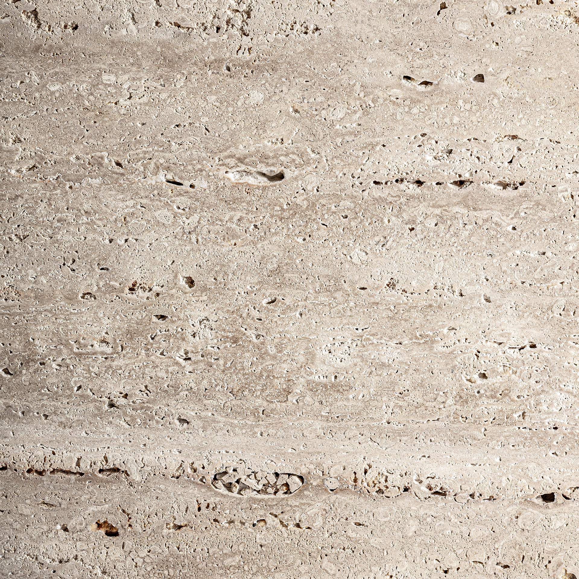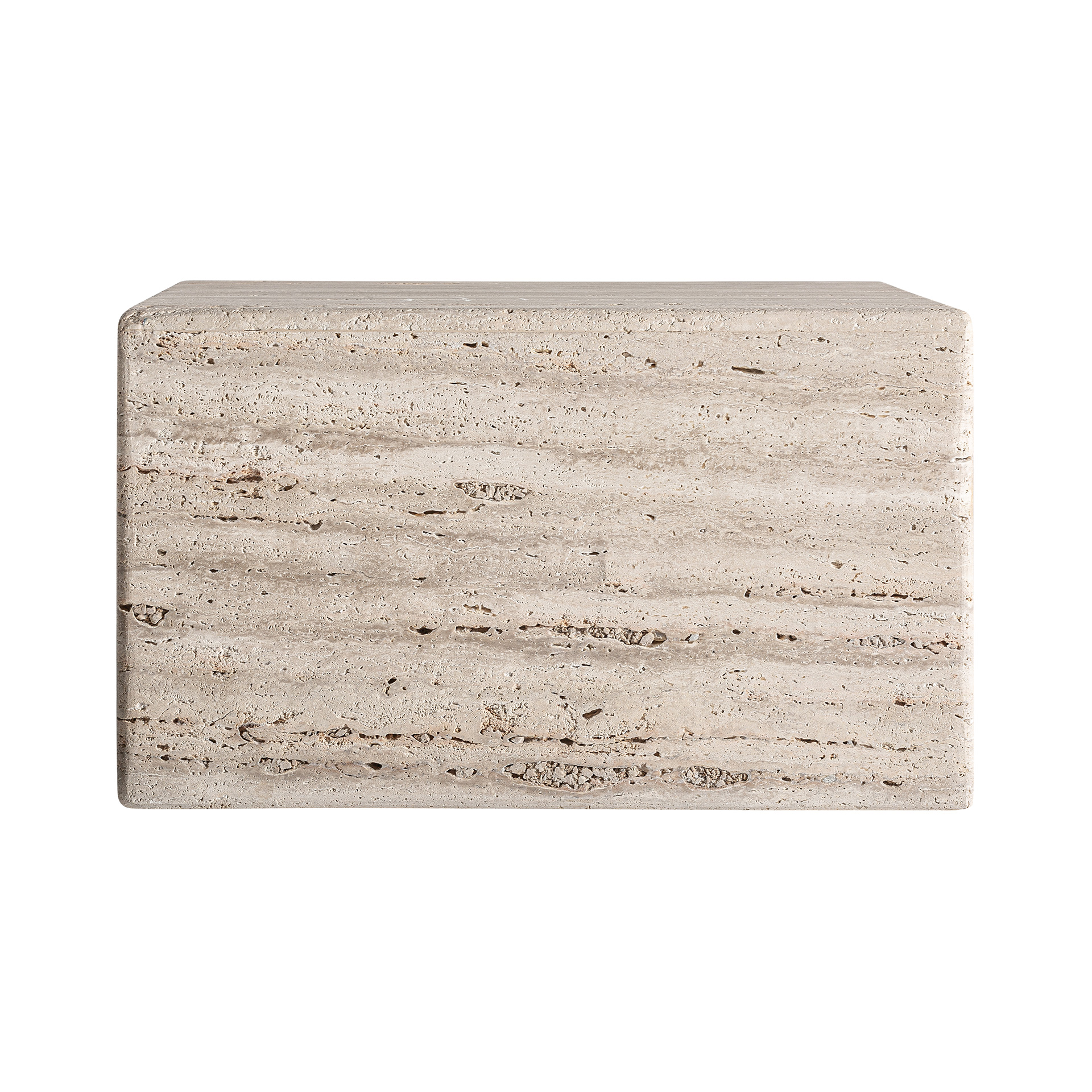 Mesa de centro Rapolano de estilo art deco fabricado en travertino en color beige.