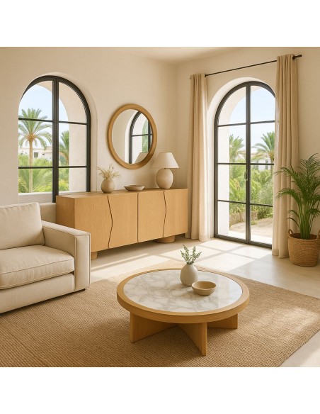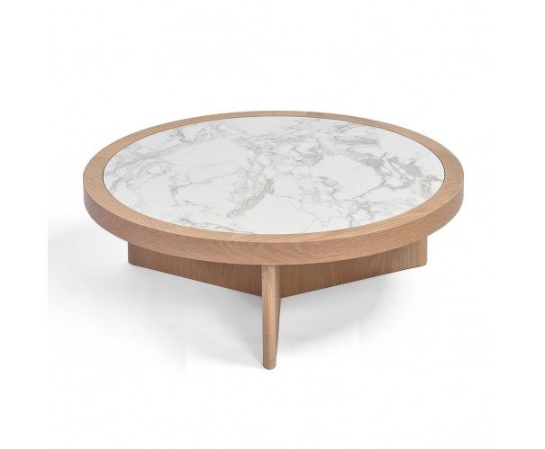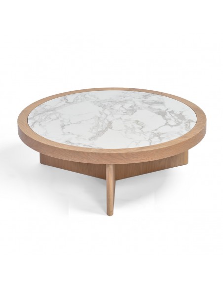 Mesa de centro redonda roble claro y cerámica