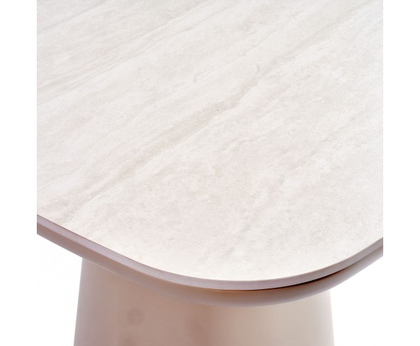 Mesa de comedor cuadrada con sobre de cerámica y pata arena