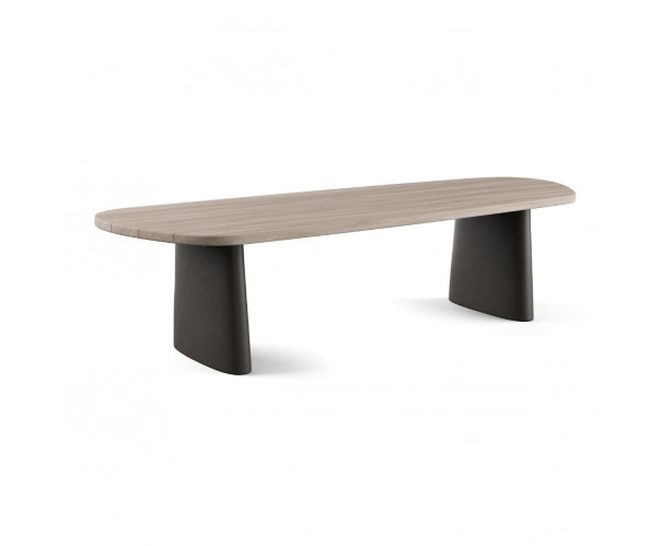 Mesa de comedor teca envejecida y fibra de vidrio oscura