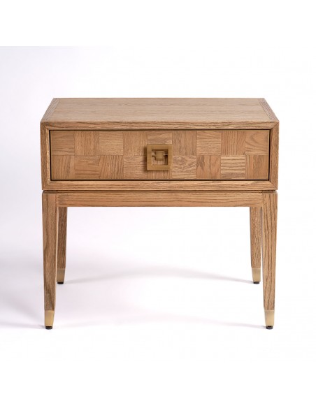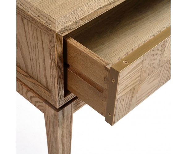 La armoniosa unión entre la madera de roble natural y el metal ofrece un diseño contemporáneo y elegante a esta espectacular mesita. La terminación de sus patas le añaden una estética refinada. Esta mesita dispone de un cajón para que guardes esas pequeñas cosas que tienen valor. Ideal para cualquier espacio gracias a su tamaño.