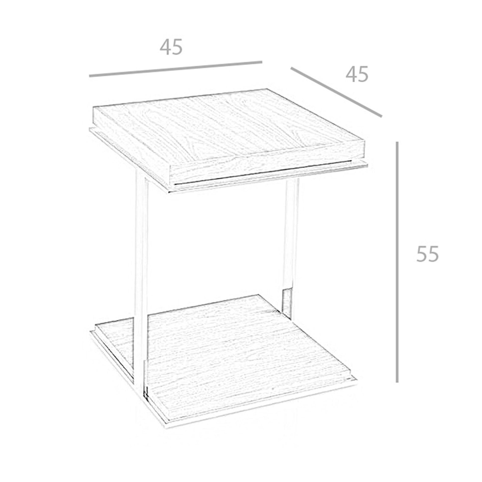 Mesa rincón cuadrada nogal y acero cromado modelo 2038 Angel Cerdá S.L.Mesa rincón cuadrada de diseño moderno con tapa de madera chapada en nogal natural y unas originales patas de acero inoxidable cromado. Esta mesa rincón con base de madera chapada en nogal natural es perfecta para aportar luminosidad y vanguardia a su hogar.Medidas del producto: 45 x 45 x 55 cm.- Gracias a su tapa de madera chapada en nogal natural de 0,5 mm de espesor podrá crear un ambiente cálido, acogedor y repleto de estilo. – El acero de sus patas, así como su diseño lineal, permite que encaje en cualquier espacio de su hogar. – Queda apoyada sobre una base de madera chapada en nogal natural, lo que le confiere una mayor estabilidad, así como un estilo único y exclusivo. – Tanto por su diseño como por su estilo moderno, le permitirá crear un ambiente repleto de vanguardia y sofisticación. – Versátil y funcional, su diseño permite que encaje en cualquier ambiente, convirtiéndose en un elemento clave de la decoración de su hogar.