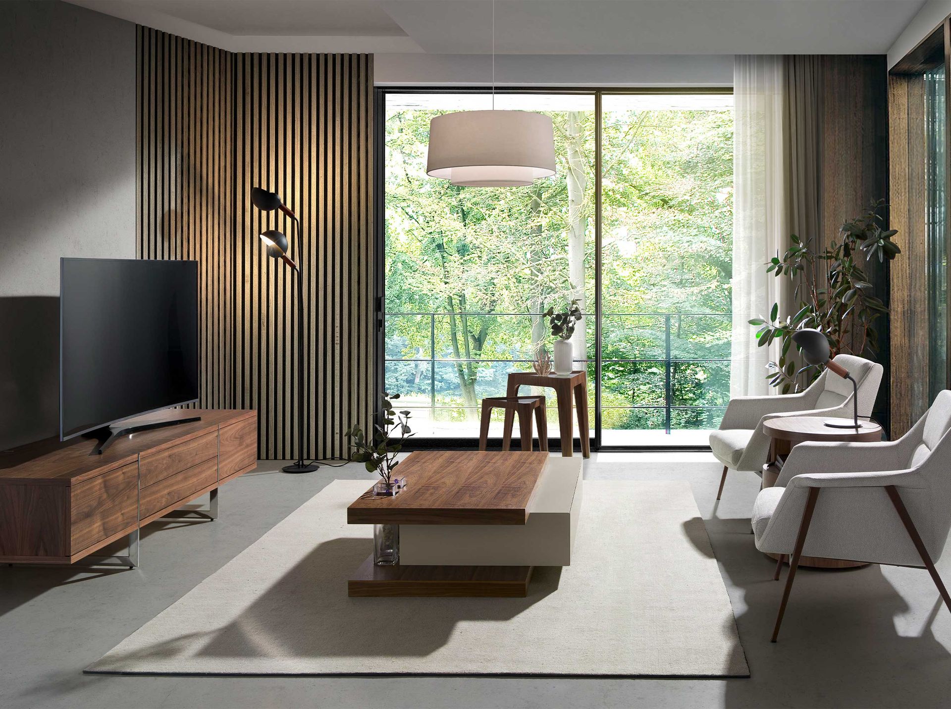 | Material | – Material de la tapa: Cristal templado- Material de las patas: Madera chapada en nogal natural de 0,5 mm de espesor |