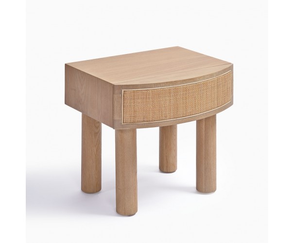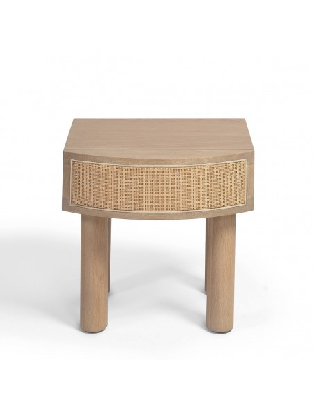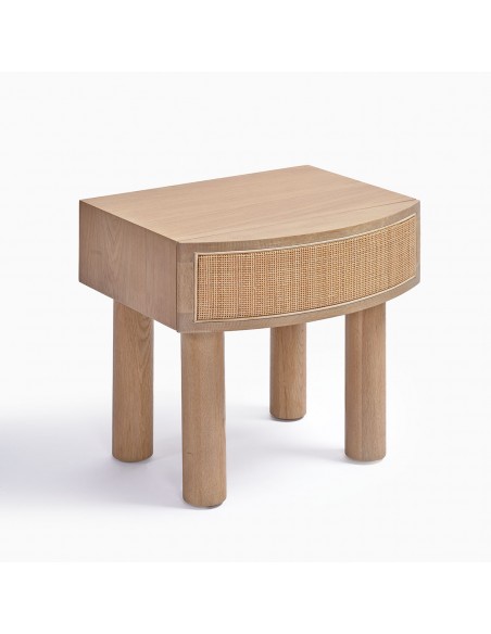 Mesita de noche en roble claro con cajón de forma curva. Ideal para combinar con nuesto aparador VERONA-1.