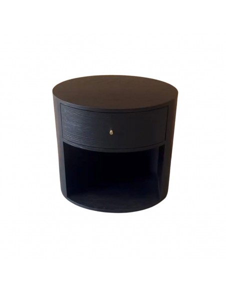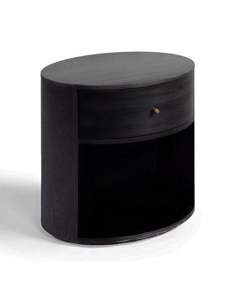 Añade un toque de sofisticación a tu dormitorio con nuestra mesita de noche de madera de roble negro, caracterizada por su estructura ovalada de estilo cilíndrico. Equipada con un cajón y un espacio abierto de almacenaje, esta pieza no solo ofrece funcionalidad, sino también un diseño elegante y contemporáneo. El tirador metálico complementa perfectamente el acabado de la madera, añadiendo un detalle moderno y práctico. Ideal para mantener tus elementos esenciales cerca durante la noche, esta mesita de noche combina belleza y utilidad para mejorar cualquier espacio con su presencia distintiva.