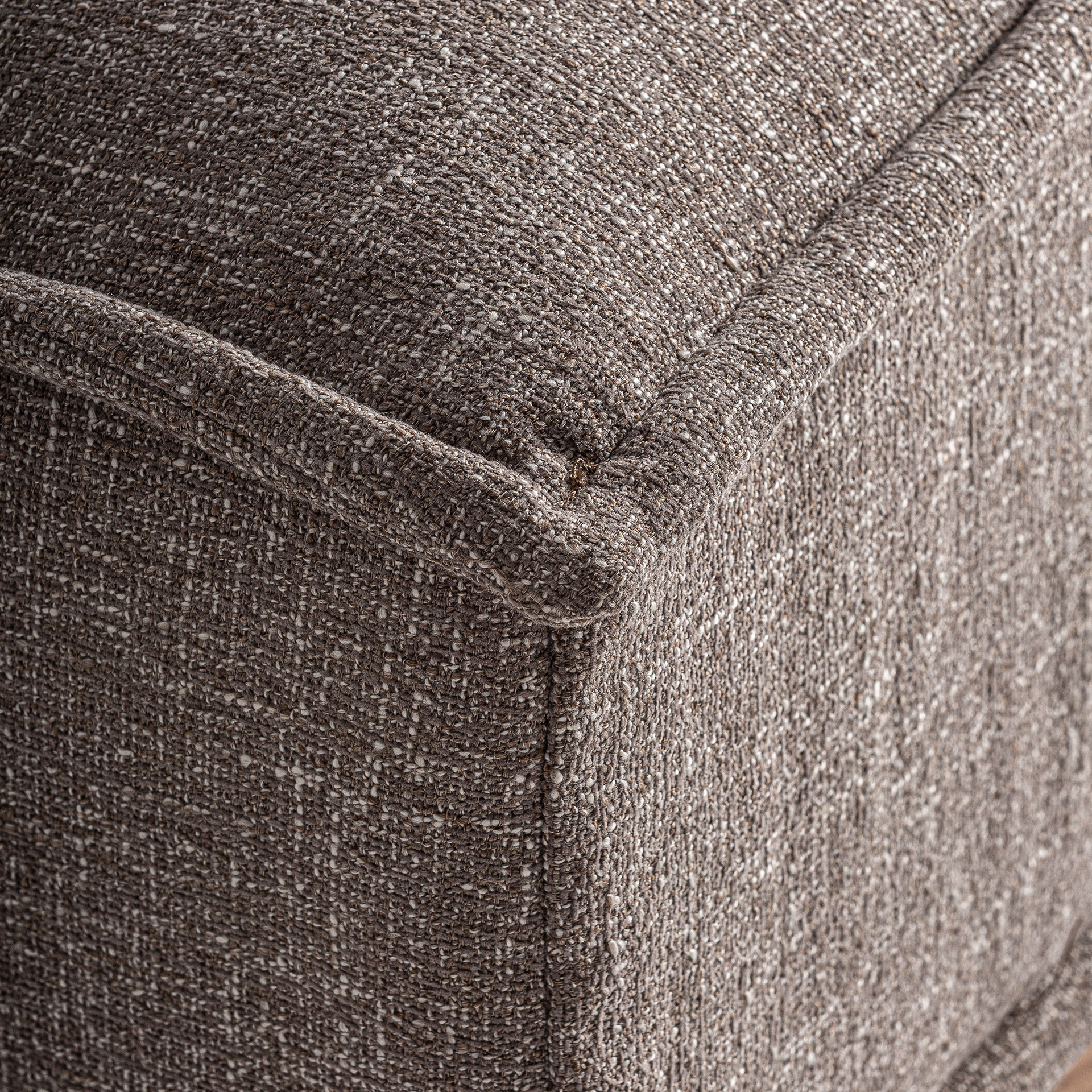 Módulo sofá central Aspach de estilo contemporáneo fabricado en poliéster en color marrón con acabado jaspeado combinado con madera de pino en color marrón.