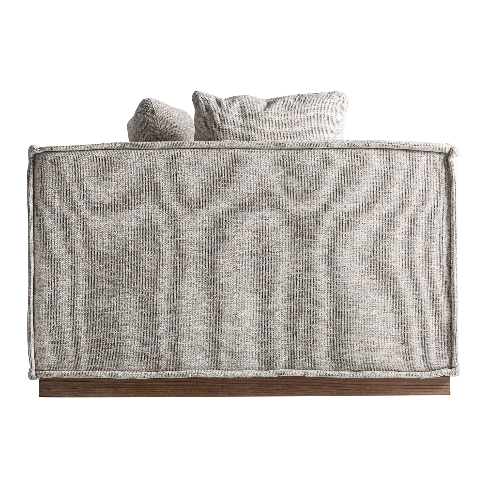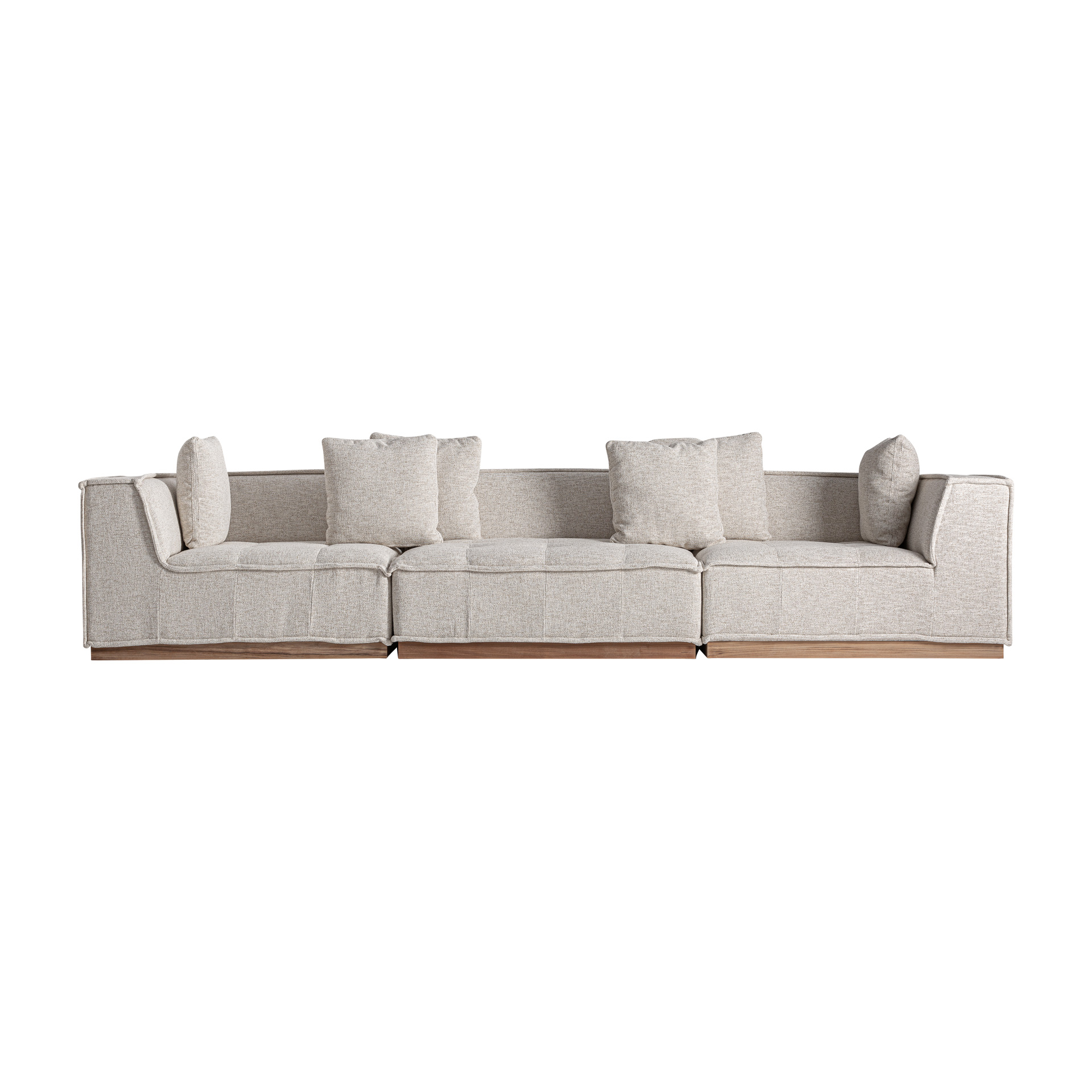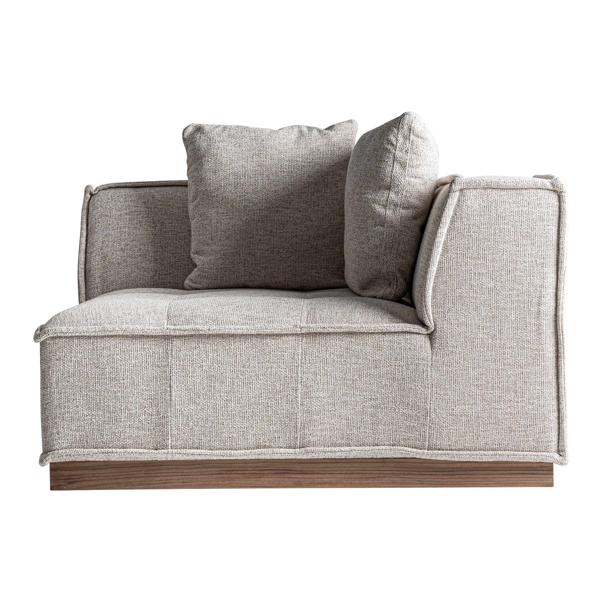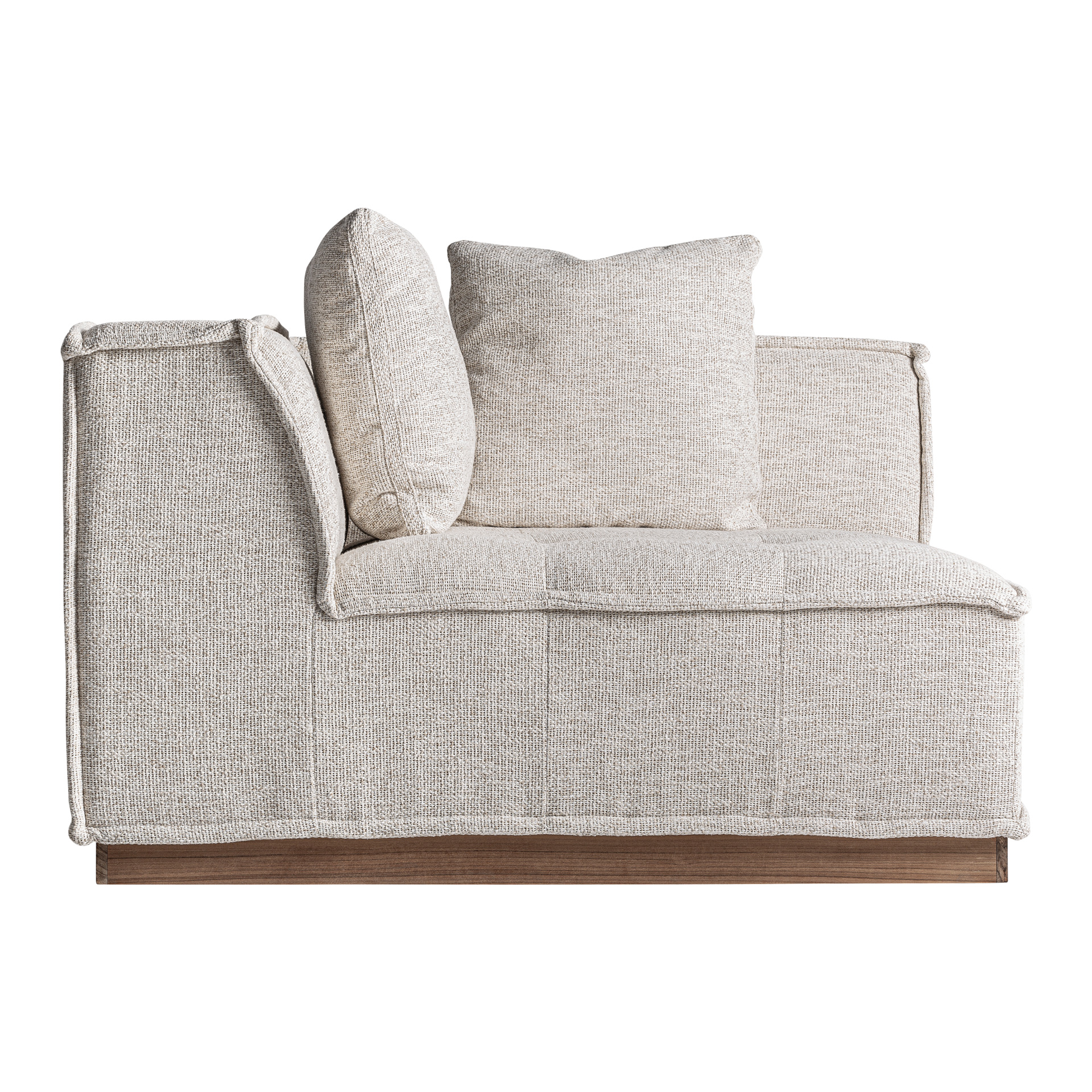 Módulo sofá esquinero Olpe de estilo contemporáneo fabricado en poliéster en color beige combinado con espuma y aluminio en color marrón. Producto desenfundable. Compatible con: 37230.