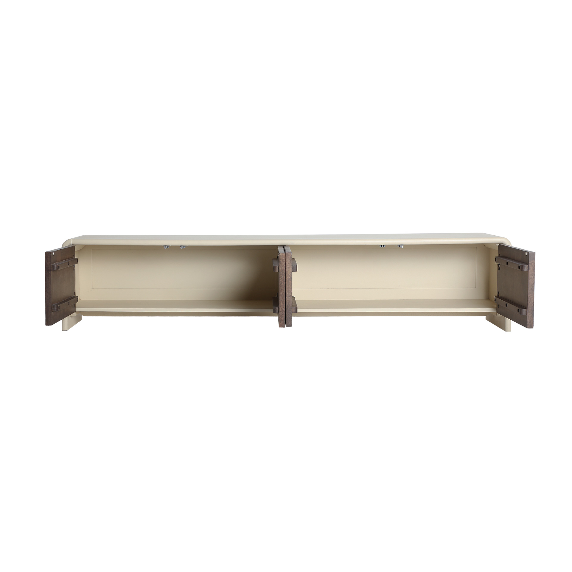 Mueble tv Milhar de estilo contemporáneo, fabricado en madera de mango en color marrón, combinado con madera dm en color beige.