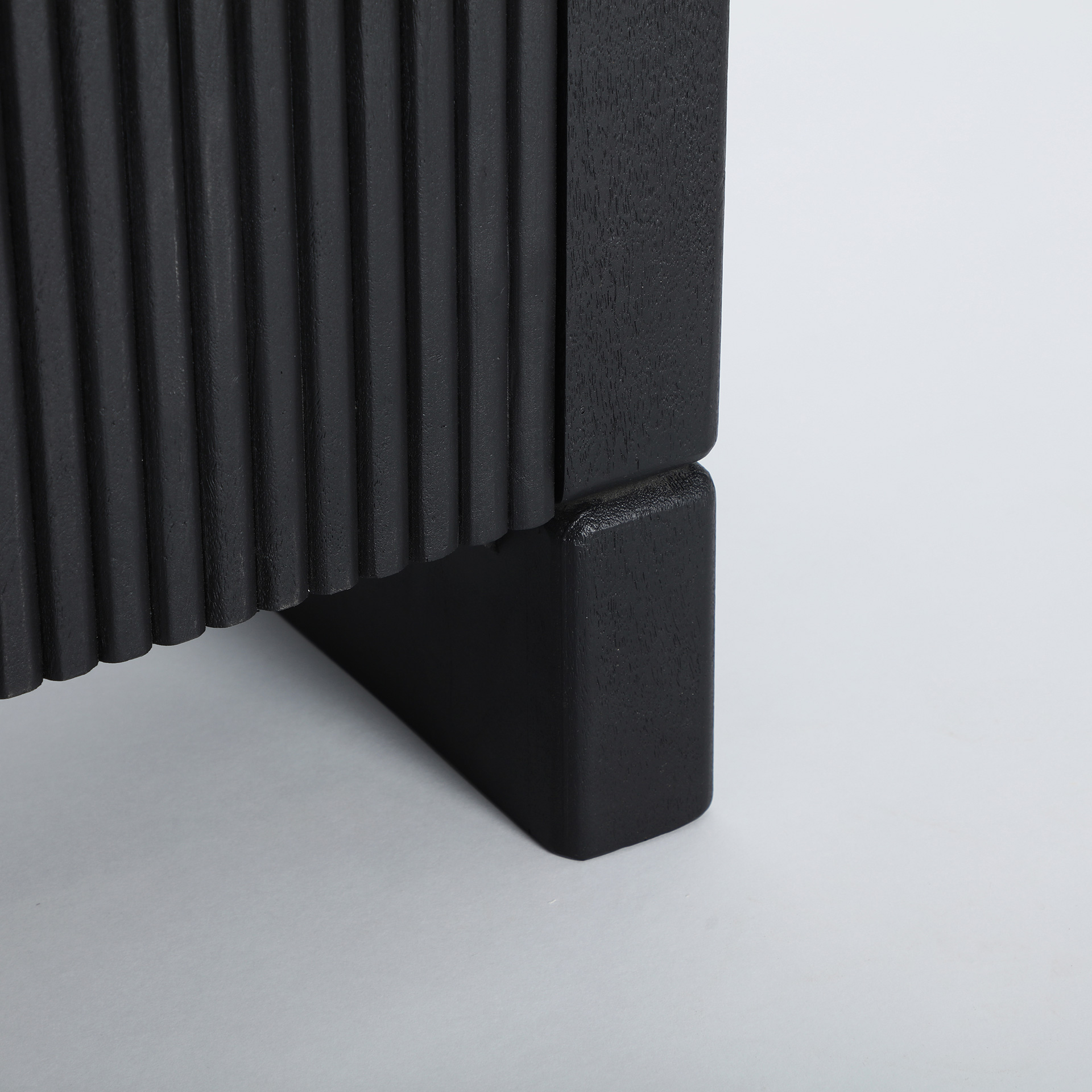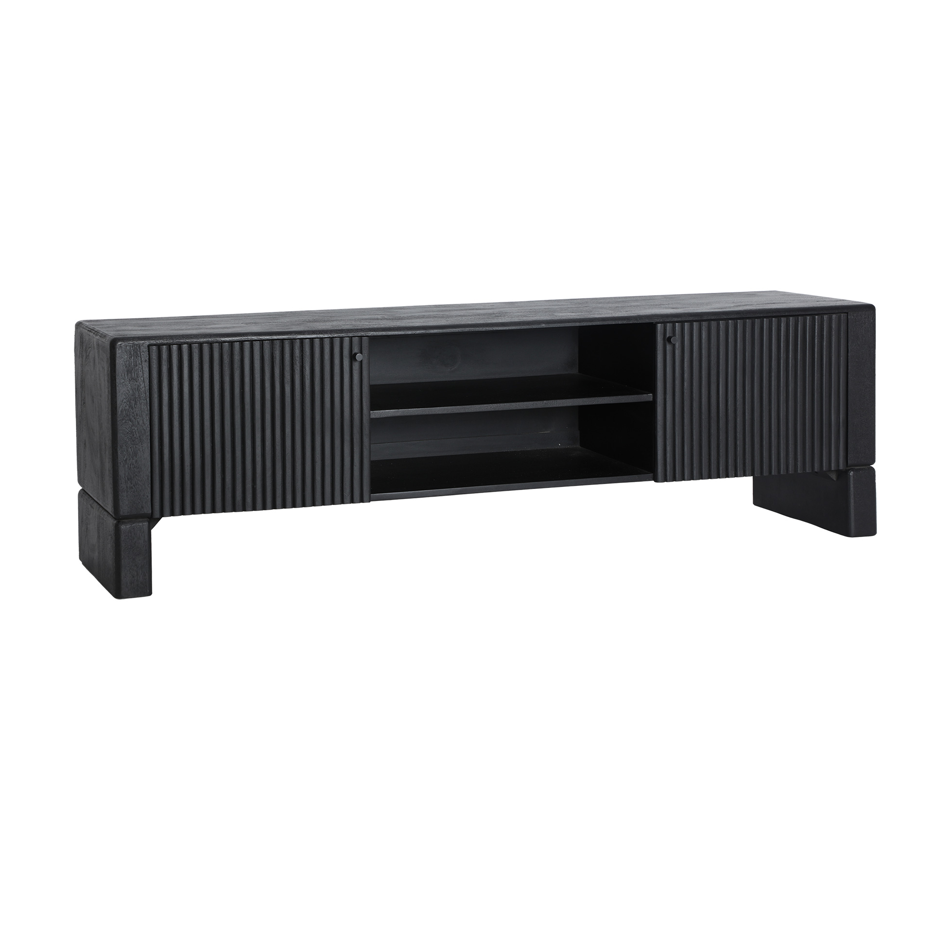 Mueble tv Nox de estilo contemporáneo, fabricado en madera de mango en color negro, combinado con madera dm.