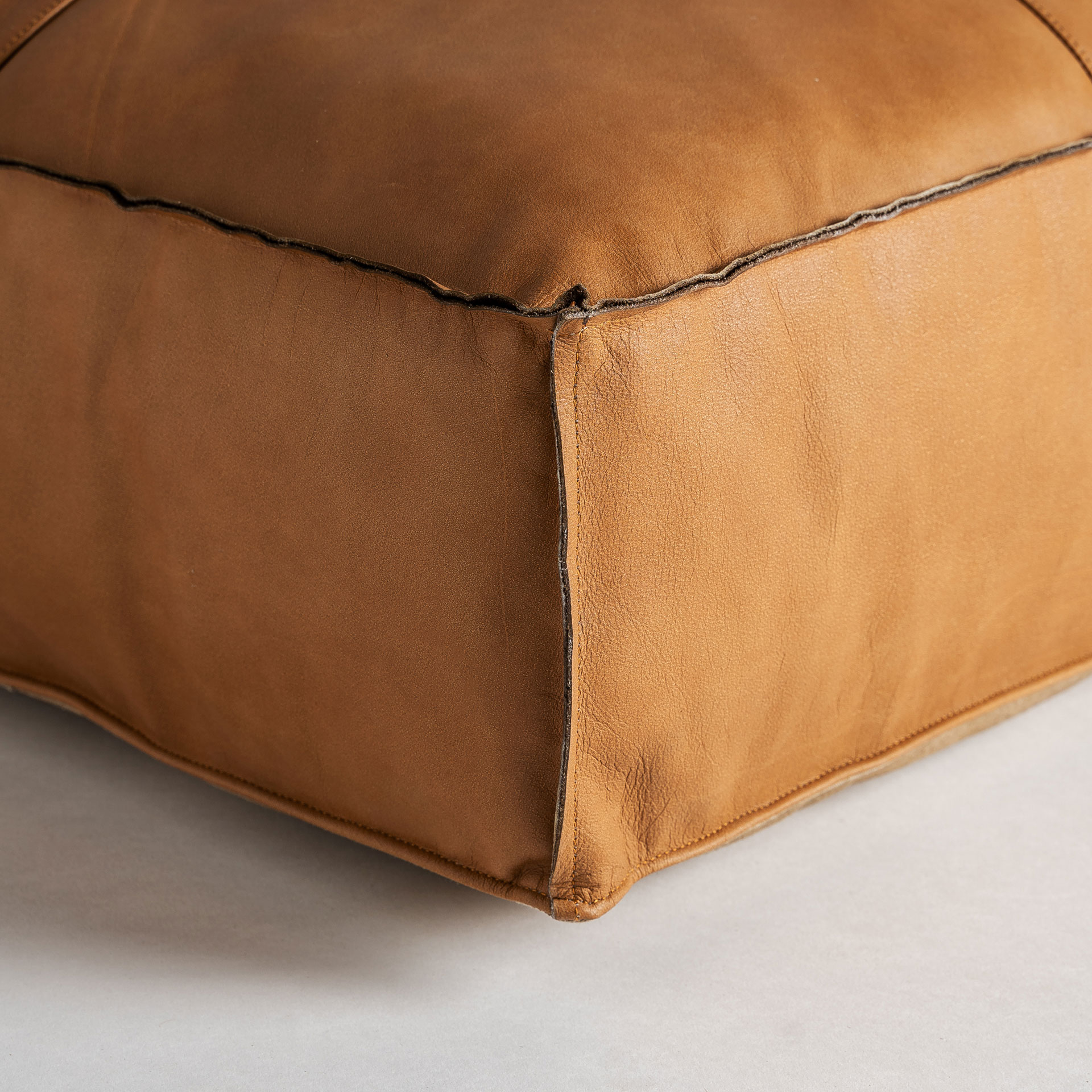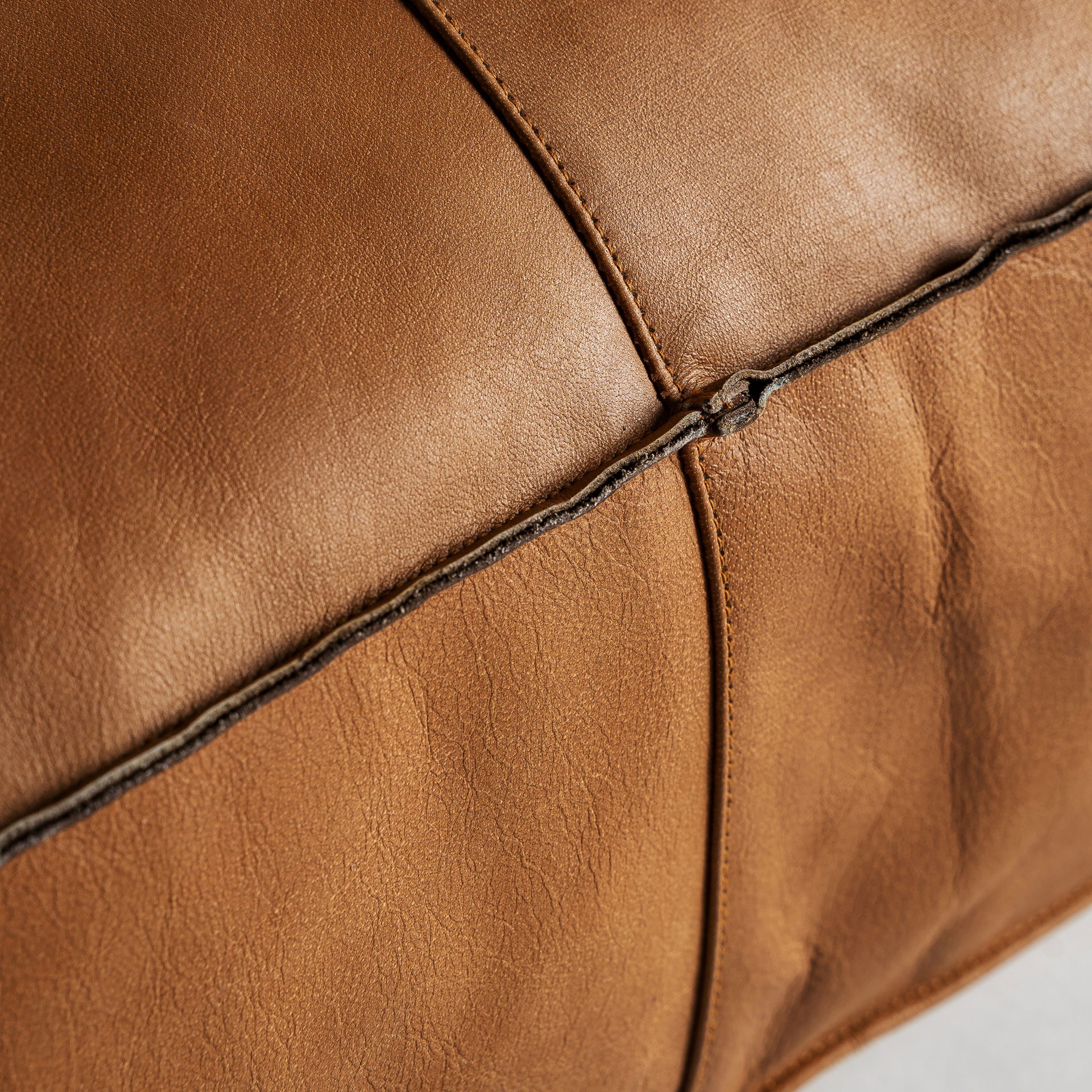 Puff Boussac de estilo vintage, fabricado en piel en color marrón. Producto desenfundable.