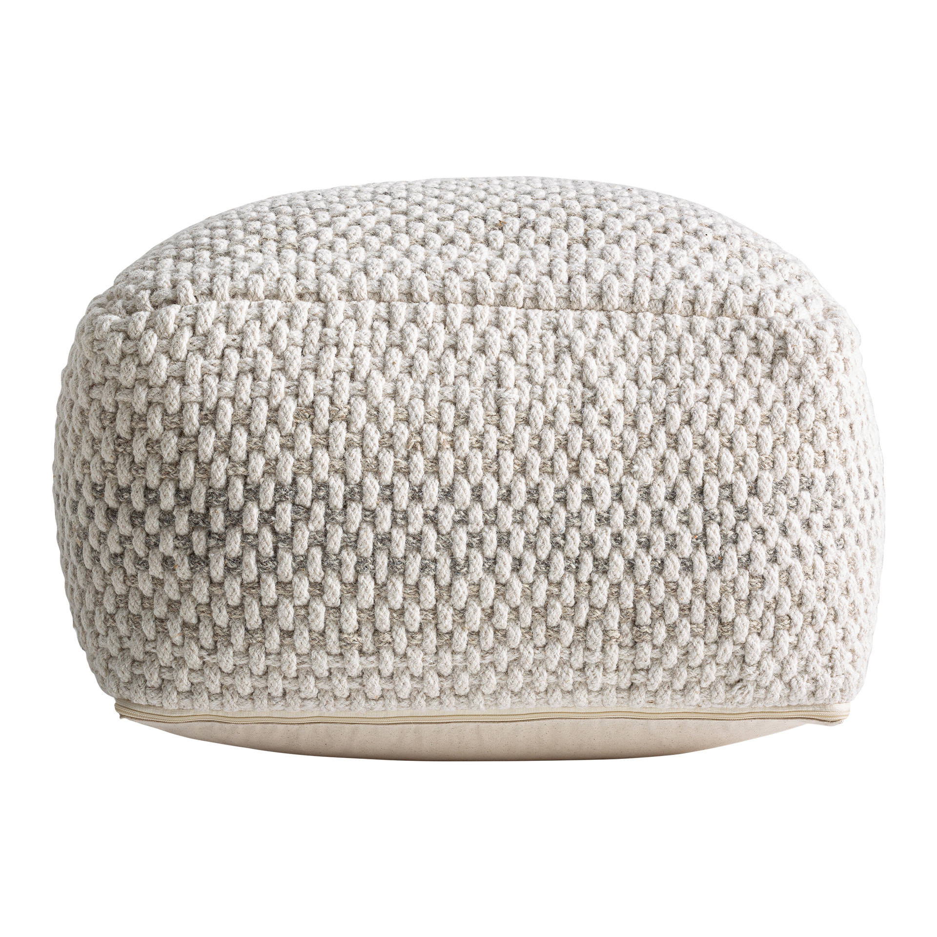 Puff Koto de estilo clásico fabricado en lana en color blanco roto combinado con espuma en color gris. Producto desenfundable.