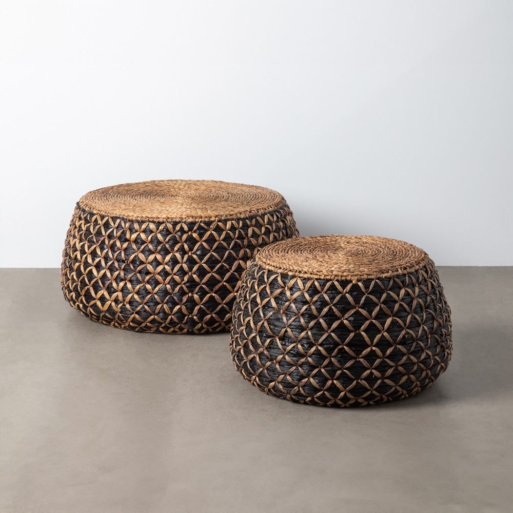 Material: jacinto de agua. Medidas: 100x100x40cm – 75x75x35cm.