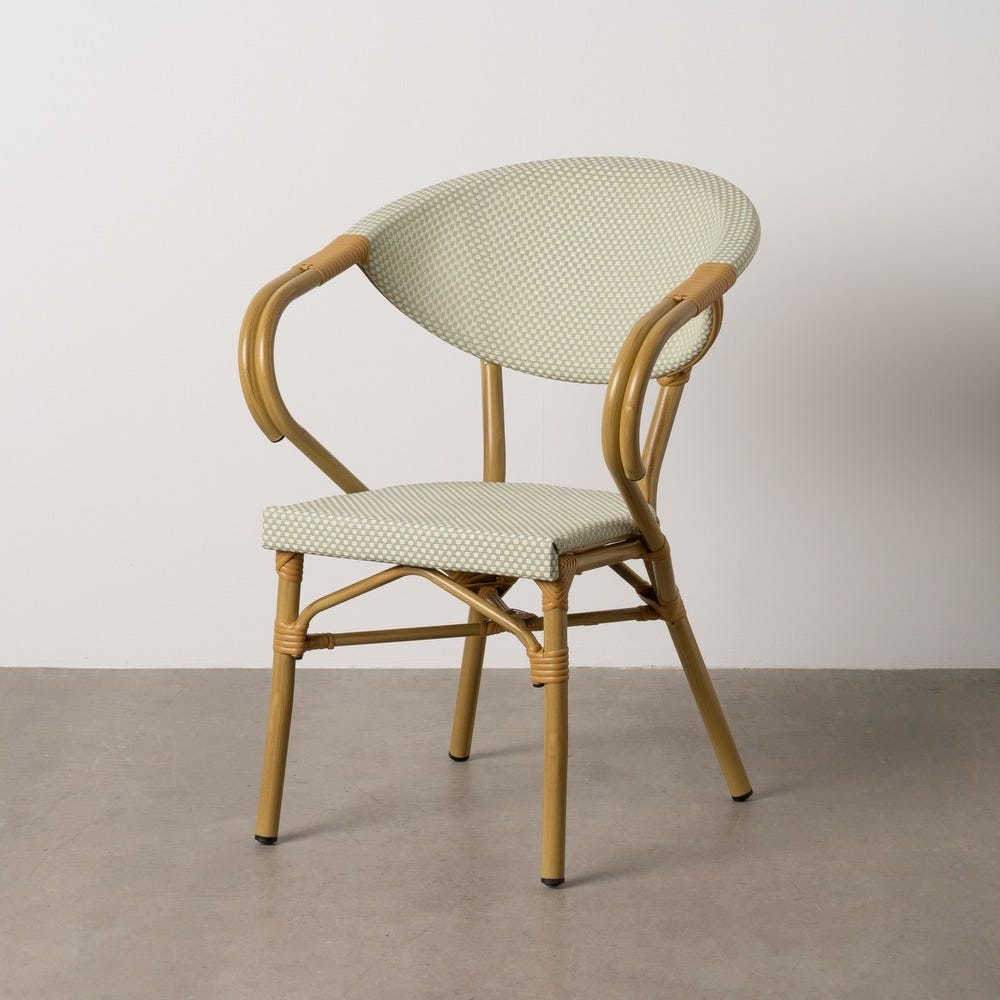 Material: aluminio, textileno. Altura asiento: 43cm. Ancho asiento: 40cm. Profundidad asiento: 42cm. Altura respaldo: 43cm. Altura reposabrazos: 28cm (71cm desde el suelo).