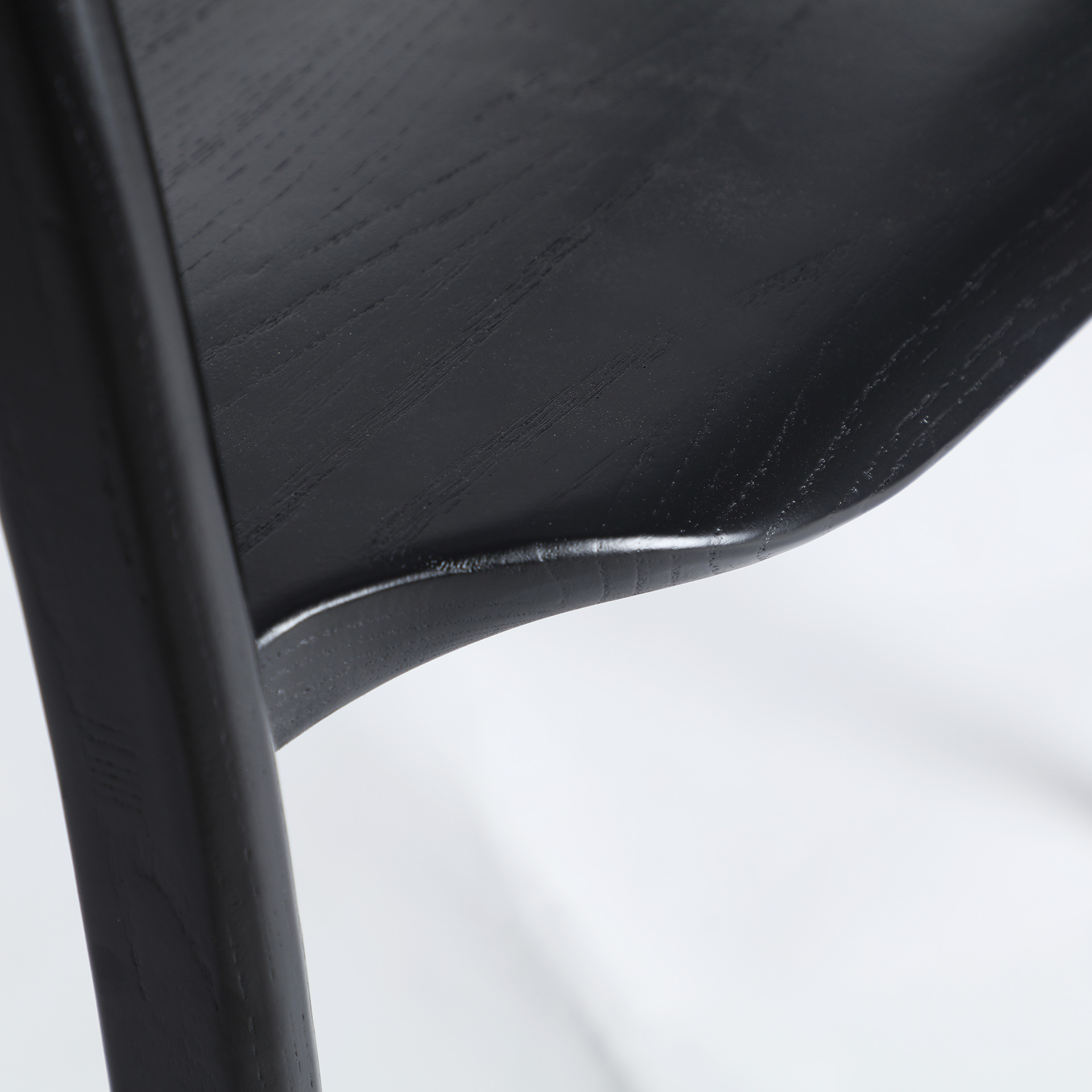 Silla Hasloch de estilo contemporáneo, fabricado en madera de olmo en color negro.