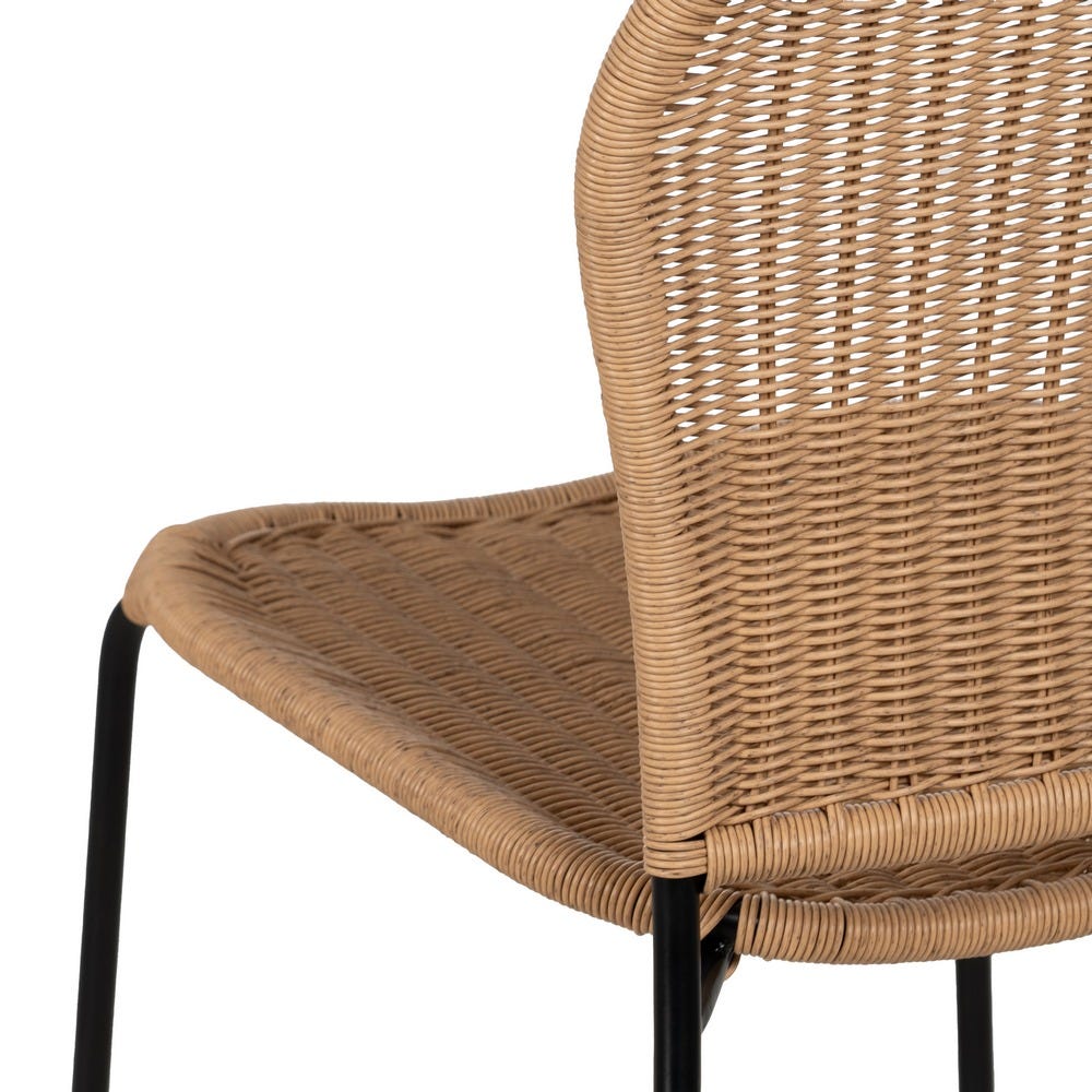 Material: polietileno, acero. Altura asiento: 45cm. Ancho asiento: 43cm. Profundidad asiento: 44cm. Altura respaldo: 45cm. Cumple la normativa EN581 (uso exterior). Apilable.