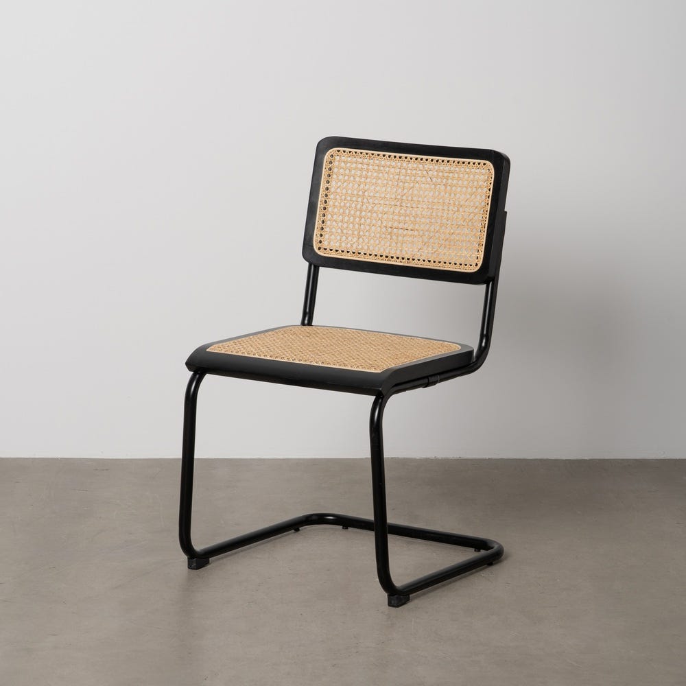 Silla Negro-Natural Madera-Ratán Salón 46 X 53 X 82,50 Cm