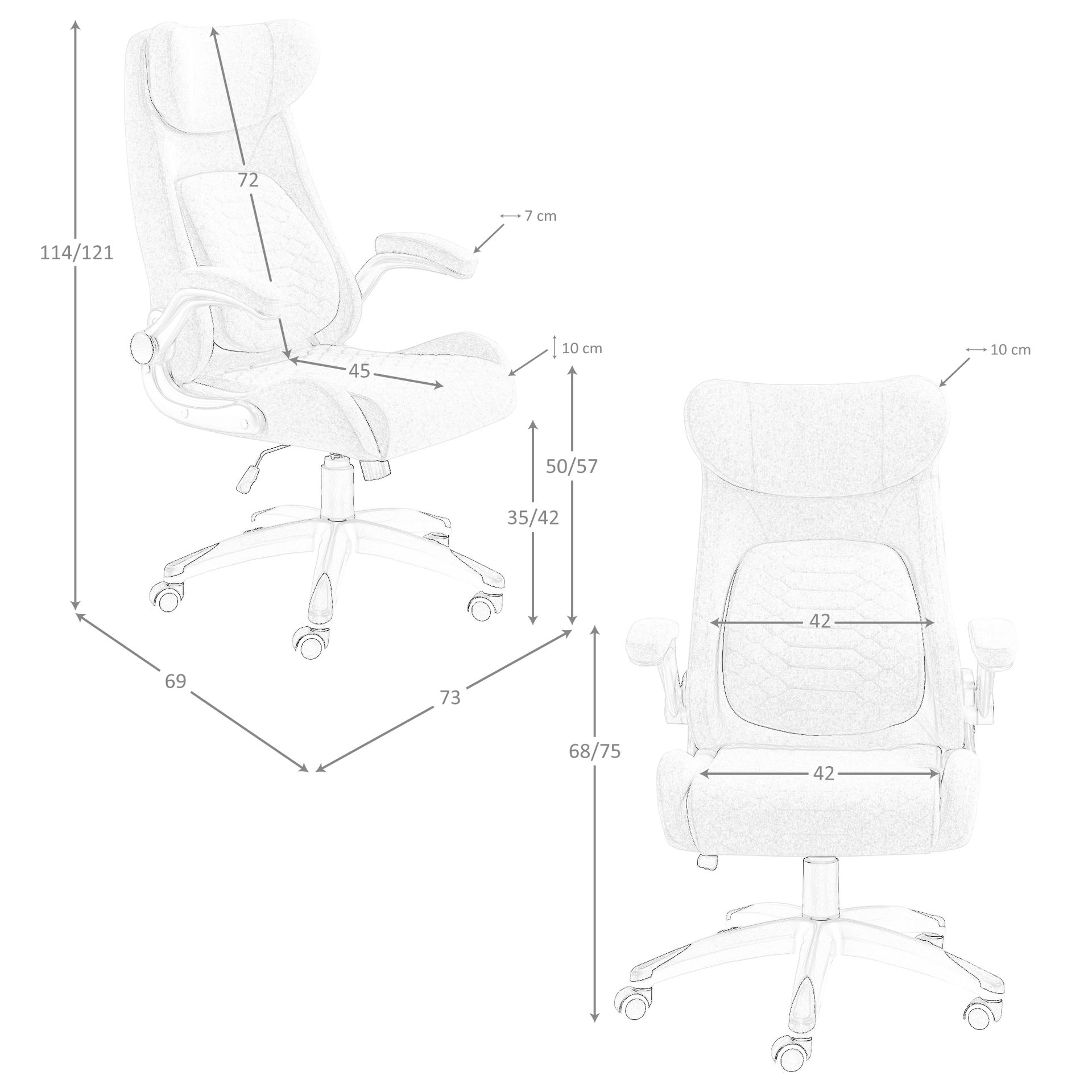 Silla oficina giratoria tela gris modelo 4224 Angel Cerdá S.L.Silla oficina giratoria de diseño moderno con asiento y respaldo tapizado en tela color gris. Cuenta con reposabrazos, lo que le confiere una mayor comodidad. Gracias a sus patas fabricadas en pvc color gris plata y su asiento regulable en altura, se convertirá en un imprescindible para su zona de trabajo, sin dejar de lado el estilo más vanguardista. Sus ruedas aportarán el extra de practicidad que necesita en sus horas de trabajo o estudio.Medidas del producto: 73 x 69 x 114 cm.- Su tapizado en tela le otorga, además de un carácter sofisticado, un aire mucho más cálido al espacio. – Esta silla de oficina cuenta con un sistema giratorio de 360º. – Equipada con sistema de elevación regulable y mecanismo basculante, permite adaptar la postura de forma personalizada, favoreciendo una posición cómoda. – Fiel a las últimas tendencias decorativas, esta silla de oficina se convertirá en un elemento decorativo y totalmente funcional que no querrá que falte en su zona de trabajo. – Los reposabrazos abatibles de esta silla de oficina la convierte en una pieza totalmente versátil a la vez que práctica y cómoda para su día a día.