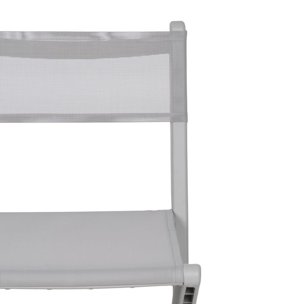 Material: polipropileno, textileno. Altura del asiento: 47cm. Ancho asiento: 38cm. Profindidad asiento: 41cm. Altura respaldo: 35cm. Plegable. No apilable. Cumple la normativa EN581 (uso exterior).