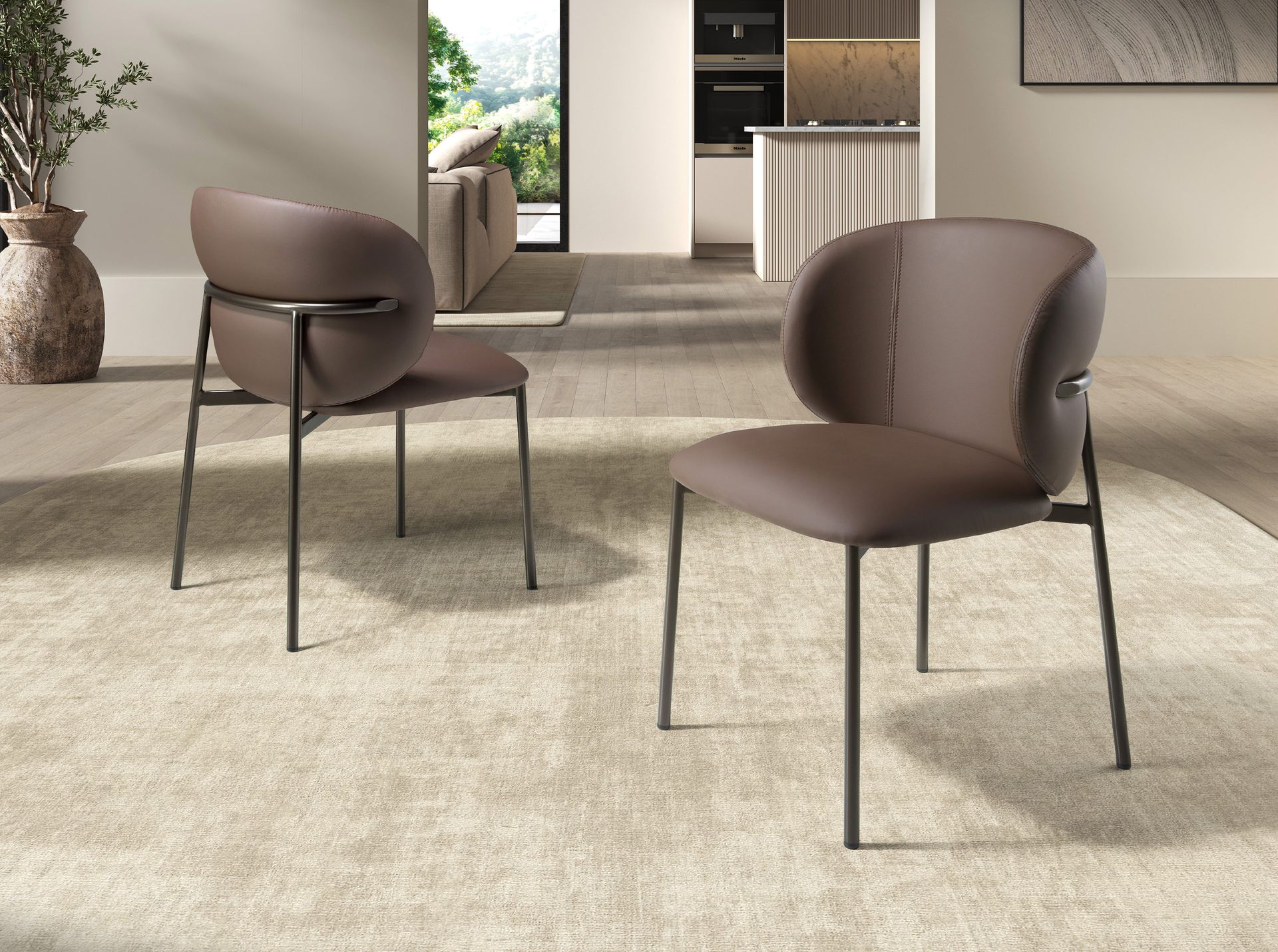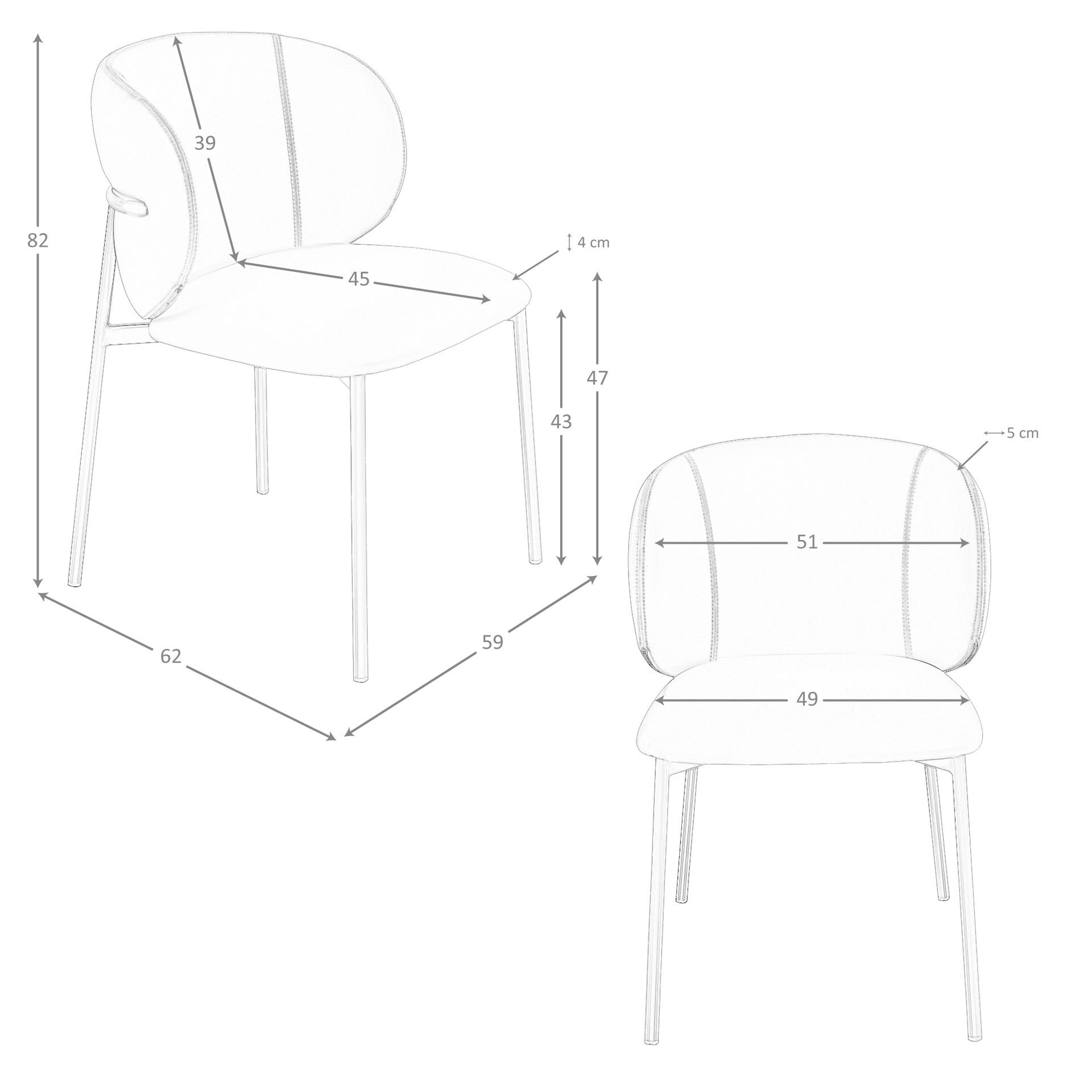 Silla polipiel marrón oscuro modelo 4239 Angel Cerdá S.L.Silla de diseño moderno con asiento y respaldo tapizados en polipiel color marrón oscuro. Sus patas de acero pintado en color marrón de estilo vanguardista a la vez que atemporal, la convertirán en el must have de su cocina o comedor. Esta silla de la firma Angel Cerdá, aúna el estilo único y personal de la marca, así como la mayor comodidad y estabilidad, gracias a la alta calidad de su tapizado y la original estructura de patas.Medidas del producto: 59 x 62 x 82 cm.- Su acabado en polipiel de alta calidad aporta una textura suave y elegante, fácil de limpiar y perfecta para un uso diario tanto en comedores modernos como en espacios contract. – El acero color marrón metal de sus patas le otorga un aire cálido a la vez que original. – El diseño moderno de esta silla de comedor la convierten en una pieza clave para crear ambientes elegantes y funcionales. – Tanto por el tamaño de su asiento y su relleno en espuma de poliuretano de 25kg/m3, así como su cómodo respaldo le permitirá contar con el máximo confort, sin dejar de lado el diseño más actual.
