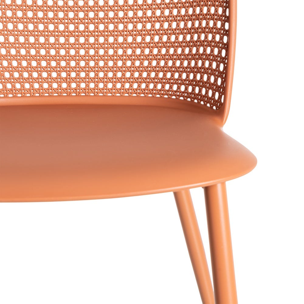 Altura asientos: 48cm. Ancho asiento: 47cm. Profundidad asiento: 51cm. Altura respaldo: 37cm. Protección UV Material pata: acero. Material asiento: PP. Cumple la normativa EN581 (uso exterior). Los muebles y productos de exterior son aptospara permanecer a la intemperie durante la temporada, sin embargo se recomienda colocarlos bajo techado o protegerlos de la lluvia.