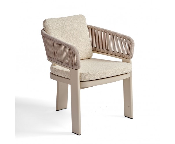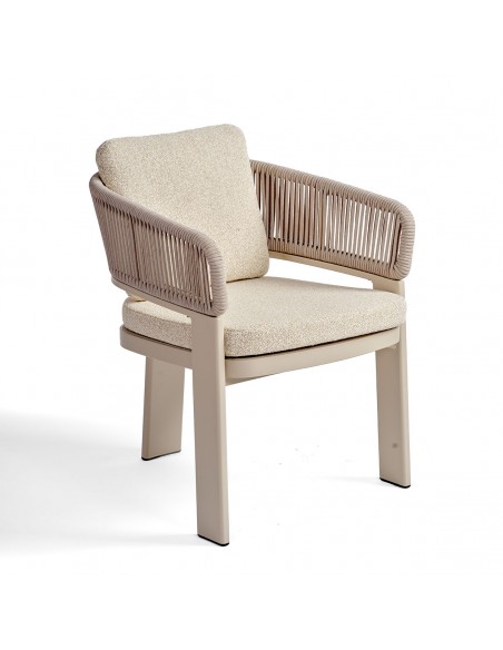 Sillón de comedor cuerda y tapizado color arena