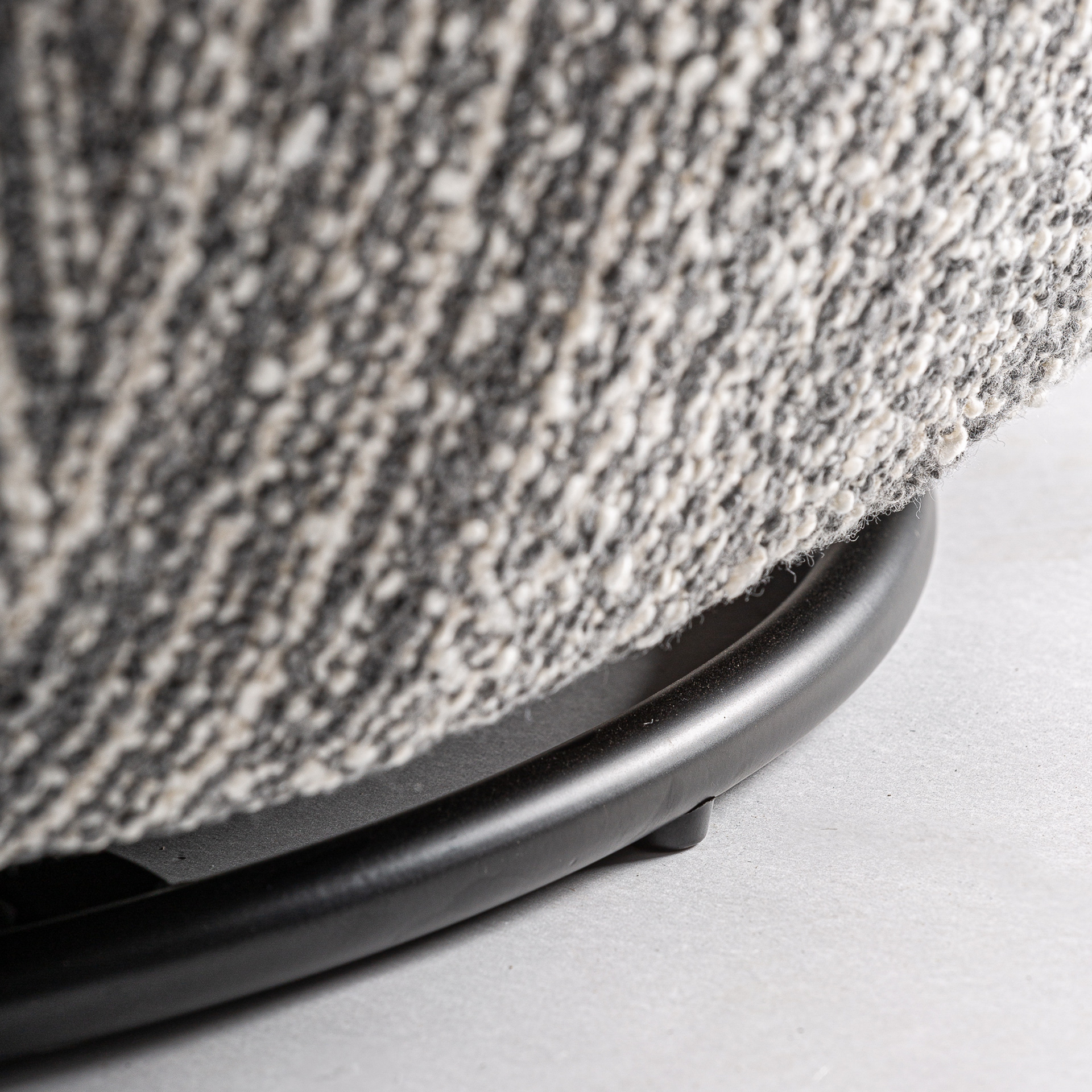 Sillón giratorio Bubu de estilo contemporáneo, fabricado en poliéster en color gris con acabado jaspeado.