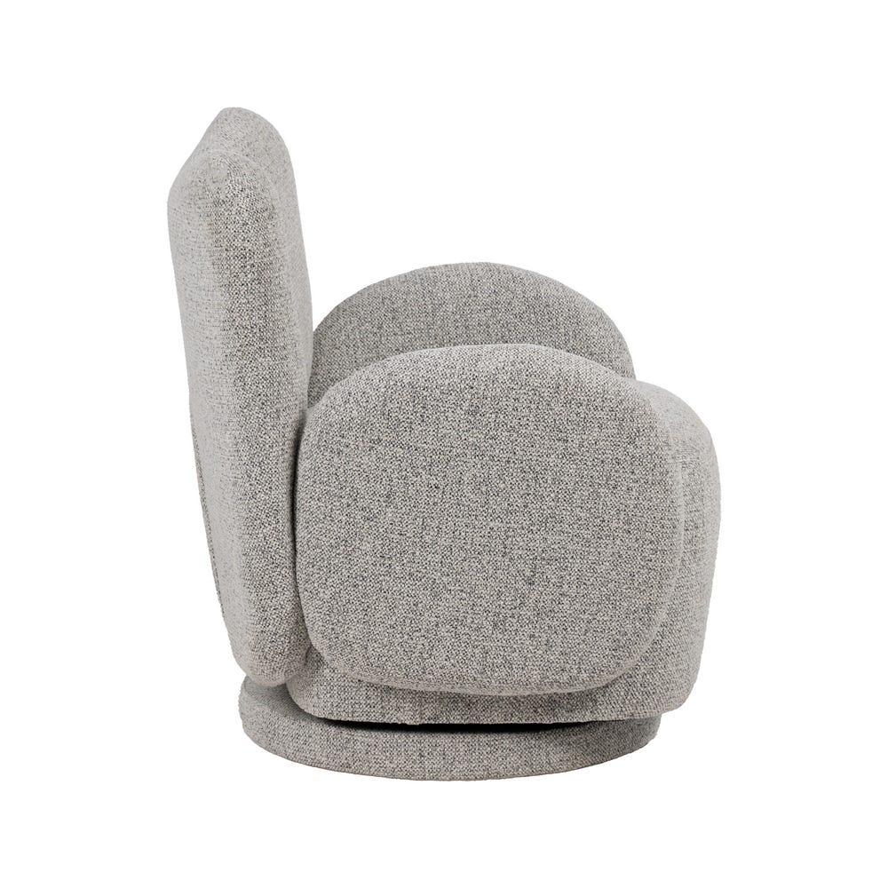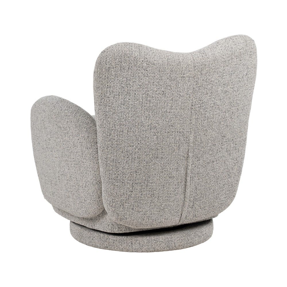 Sillón giratorio. Material: tejido (100% poliéster). Estructura: madera de pino, madera contrachapada, hierro. Relleno: foam, densidad 25. Altura asiento: 45cm. Ancho asiento: 56cm. Profundidad asiento: 56cm. Altura respaldo: 41cm. Altura reposabrazos: 15cm. Máximo peso soportado: 120kgs. Cumple la normativa EN12520 (uso doméstico).