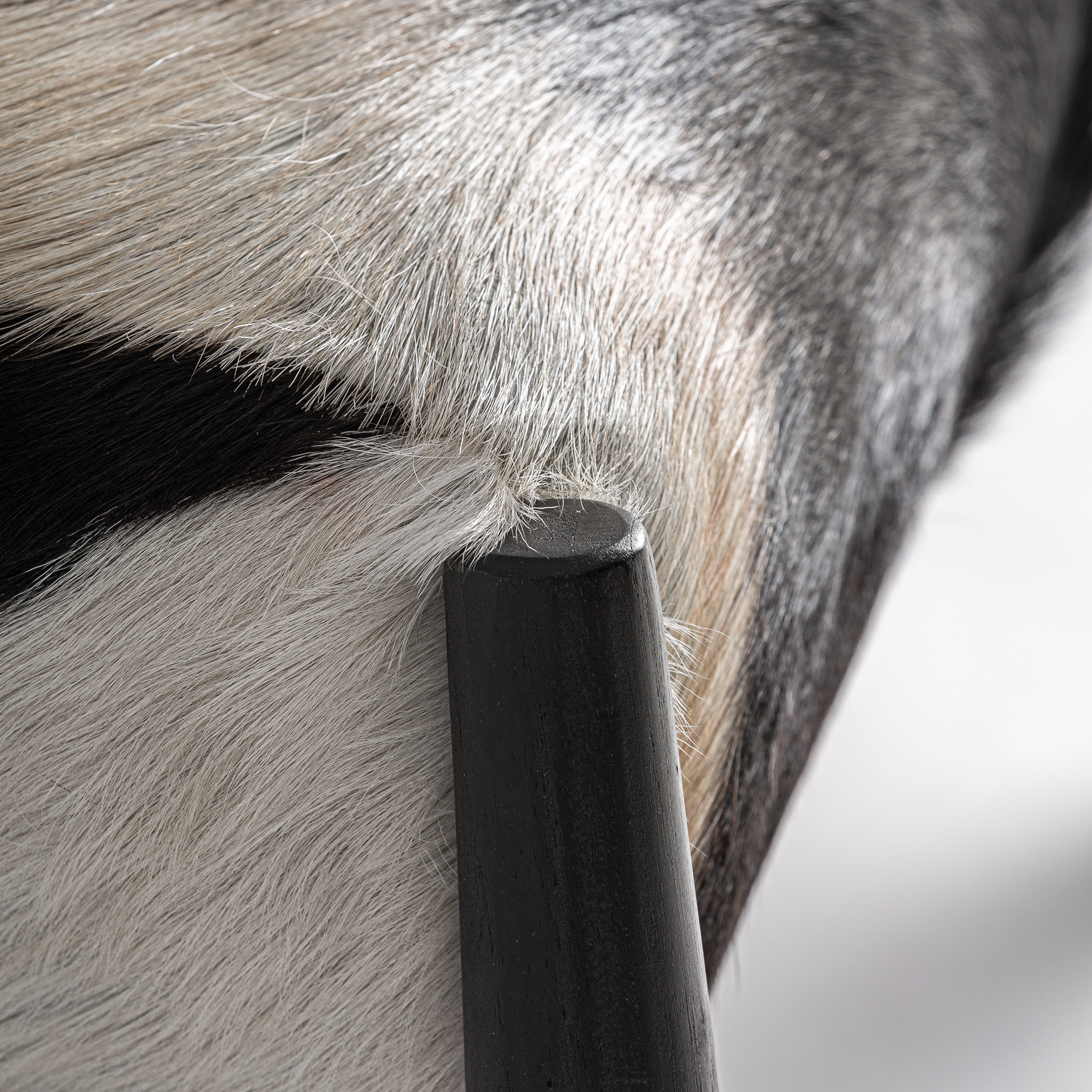Sillón Kasher de estilo contemporáneo fabricado en madera de teka en color negro combinado con piel en color blanco.