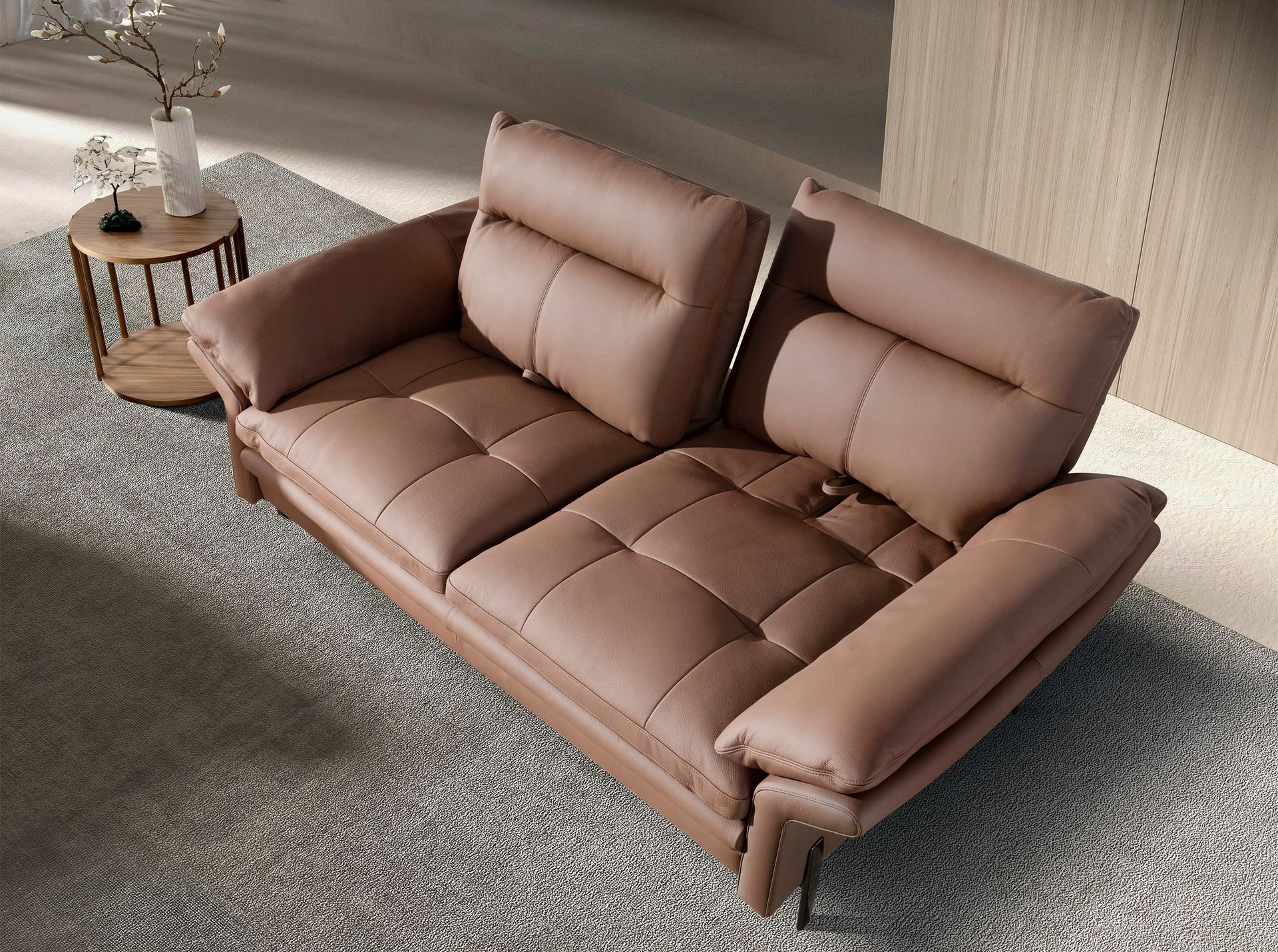 Sofá 2 plazas piel marrón modelo 6242 Angel Cerdá S.L.Sofá de 2 plazas de diseño moderno tapizado en piel de origen vacuno color marrón. Tanto por su estilo, como por sus patas de acero inoxidable cromado oscuro, este sofá aportará el toque de vanguardia y elegancia que busca para su hogar.Medidas del producto: 195 x 118 x 94 cm.- La gran calidad de su tapizado en piel de origen vacuno de 1,25mm de espesor, le confiere además de elegancia y distinción, una gran durabilidad y comodidad. – Todos nuestros sofás están fabricados con materiales de la más alta calidad, con una robusta estructura interna fabricada en madera maciza de pino natural. – Su respaldo basculante con accionado manual permite adaptarlo a las necesidades del usuario, ofreciendo el máximo confort y practicidad.