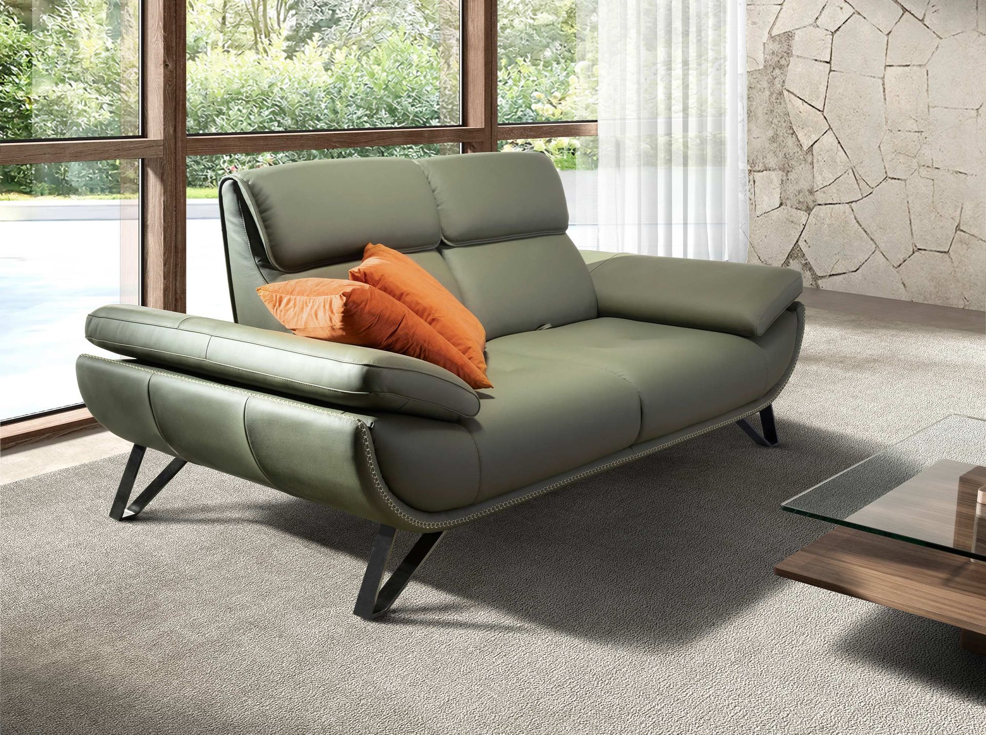 Sofá 2 plazas piel verde oliva modelo 6246 Angel Cerdá S.L.Sofá de 2 plazas de diseño moderno tapizado en piel de origen vacuno color verde oliva. Tanto por su estilo, como por sus patas de acero inoxidable cromado oscuro, este sofá aportará el toque de vanguardia y elegancia que busca para su hogar.Medidas del producto: 205 x 127 x 95 cm.- La gran calidad de su tapizado en piel de origen vacuno de 1,25mm de espesor, le confiere además de elegancia y distinción, una gran durabilidad y comodidad. – Todos nuestros sofás están fabricados con materiales de la más alta calidad, con una robusta estructura interna fabricada en madera maciza de pino natural. – Su respaldo basculante con accionado manual permite adaptarlo a las necesidades del usuario, ofreciendo el máximo confort y practicidad.