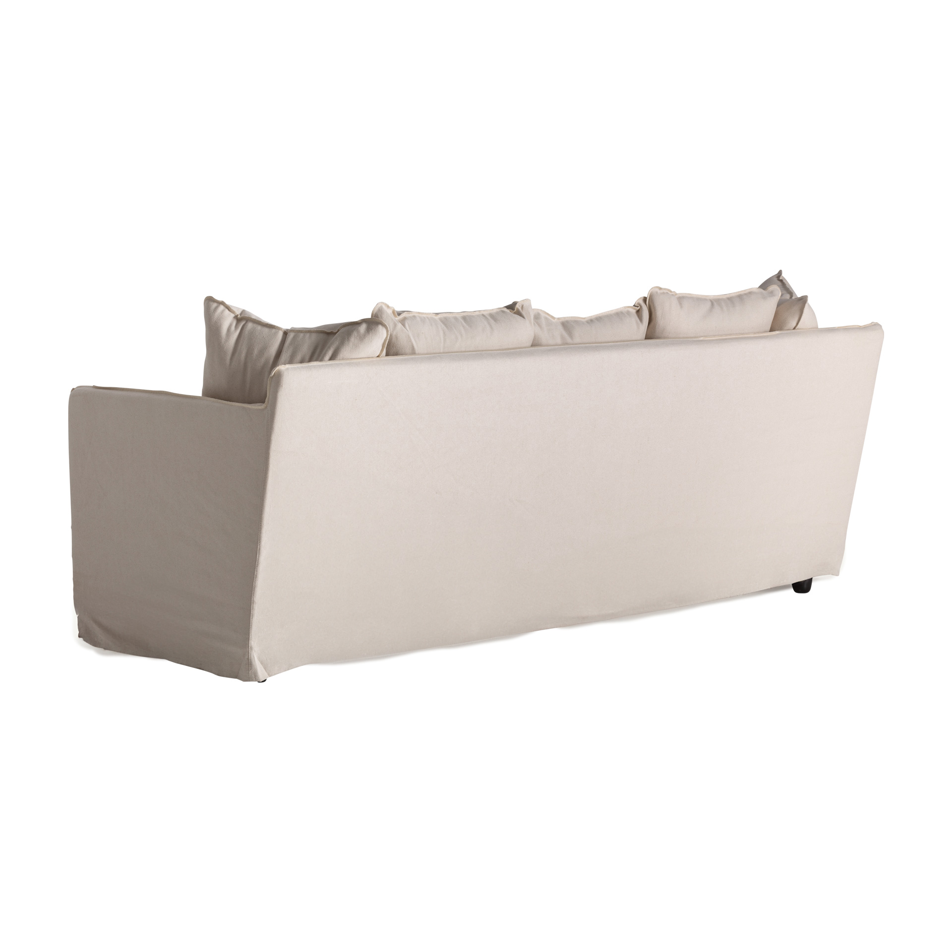 Sofá Bardney de estilo clásico fabricado en lino en color beige combinado con algodón y espuma.