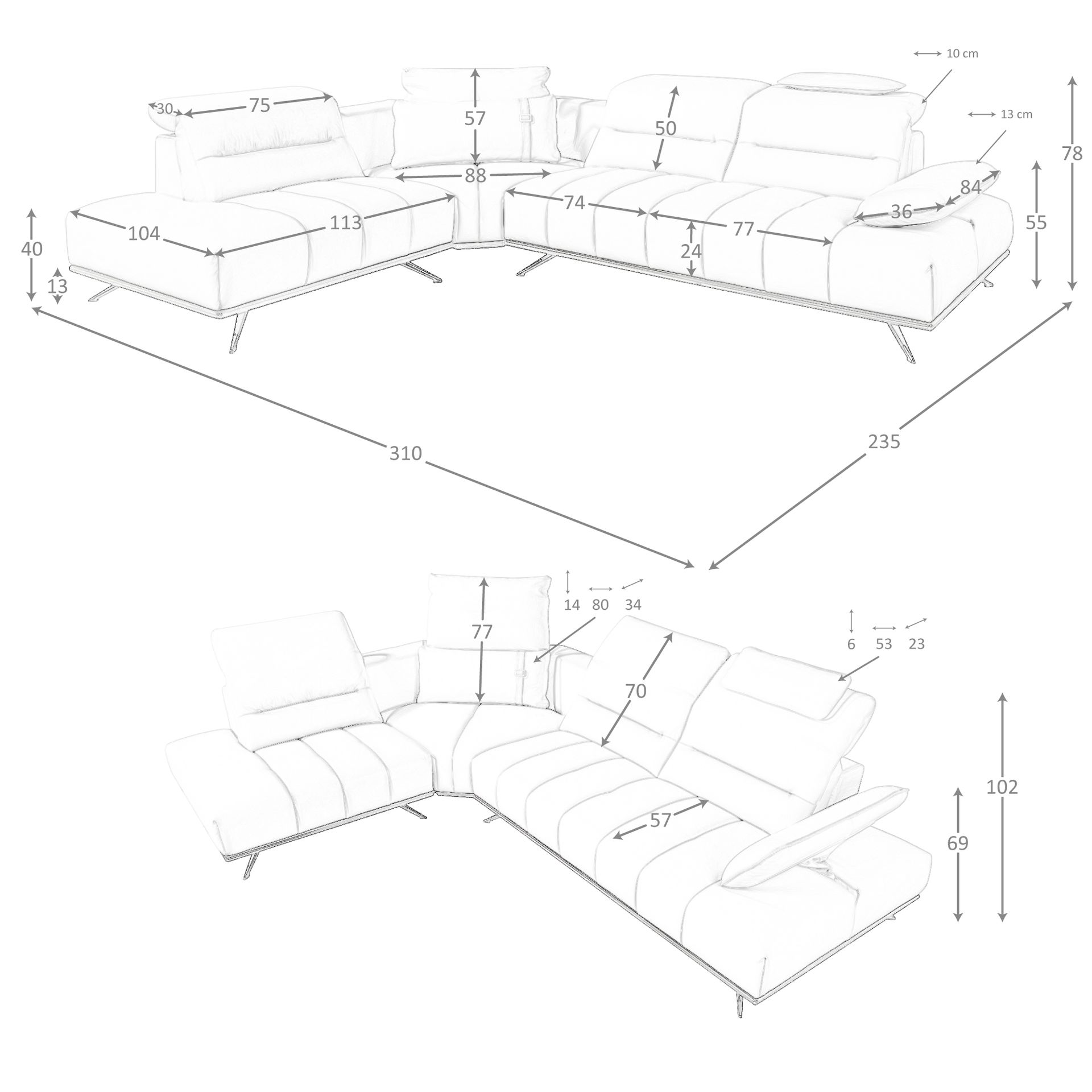 Sofá chaise longue izquierda piel gris claro modelo 6243 Angel Cerdá S.L.Sofá chaise longue izquierda de 5 plazas de diseño moderno tapizado en piel de origen vacuno color gris claro con reposacabezas para garantizar una mayor comodidad. Tanto por su estilo, como por su embellecedor de madera tintado en color nogal oscuro y patas de acero inoxidable cromado oscuro, este sofá aportará el toque de vanguardia y elegancia que busca para su hogar.Medidas del producto: 310 x 235 x 102 cm.- La gran calidad de su tapizado en piel natural de origen vacuno, con 1,25 mm de espesor y una armoniosa combinación de colores, le confieren además de elegancia y distinción, una gran durabilidad y comodidad. – Sus reposacabezas articulados independientes le confieren ese extra de confort y adaptabilidad, sin dejar de lado la más alta tendencia. – Todos nuestros sofás están fabricados con materiales de la más alta calidad, con una robusta estructura interna fabricada en madera maciza de pino natural. – Su reposabrazos incorpora un sistema de articulación multiposición que permite ajustar su inclinación, mejorando la ergonomía y el confort en todo momento.