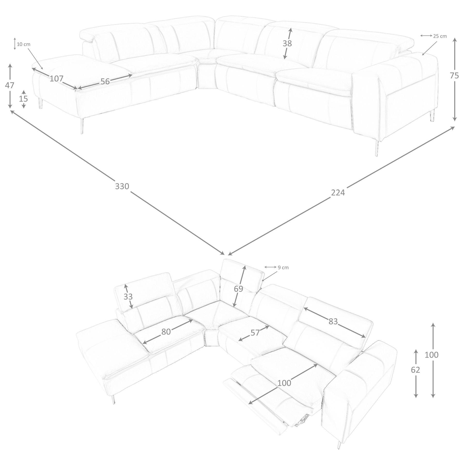 Sofá chaise longue relax izquierda piel gris modelo 6218 Angel Cerdá S.L.Sofá chaise longue relax izquierda de 5 plazas de diseño moderno tapizado en piel de origen vacuno color gris con reposacabezas para garantizar una mayor comodidad. Tanto por su estilo, como por sus patas de acero inoxidable pulido oscurecido, este sofá aportará el toque de vanguardia y elegancia que busca para su hogar.Su sistema de relax eléctrico, le aporta el extra de comodidad que necesita para relajarse.Medidas del producto: 330 x 224 x 100 cm.- La gran calidad de su tapizado en piel de origen vacuno de 1,5mm de espesor, le confiere además de elegancia y distinción, una gran durabilidad y comodidad. – Este sofá cuenta con sistema relax, lo que le aporta el extra de comodidad que necesita para relajarse. Su accionado eléctrico le ofrece además, una mayor practicidad y funcionalidad. – Sus reposacabezas articulados independientes le confieren ese extra de confort y adaptabilidad, sin dejar de lado la más alta tendencia. – Todos nuestros sofás están fabricados con materiales de la más alta calidad, con una robusta estructura interna fabricada en madera maciza de pino natural. – Cuidando hasta el más mínimo detalle, sus puertos USB y USB-C le permitirá tener cerca sus dispositivos, garantizando la combinación perfecta entre diseño y versatilidad.