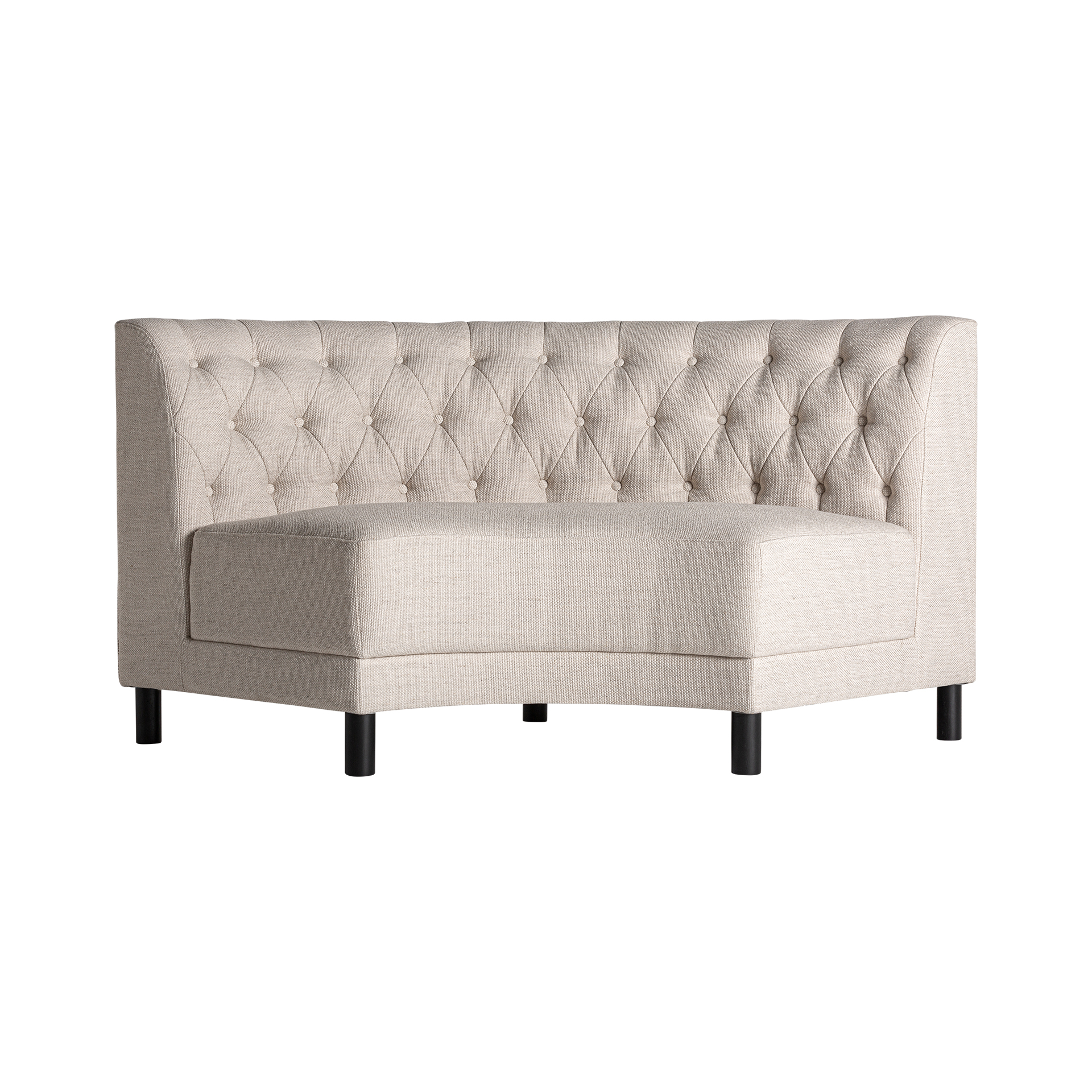 Sofá modular Egna de estilo art deco fabricado en madera de pino en color negro combinado con poliéster en color crema y madera de caucho en color negro. Producto desmontable.
