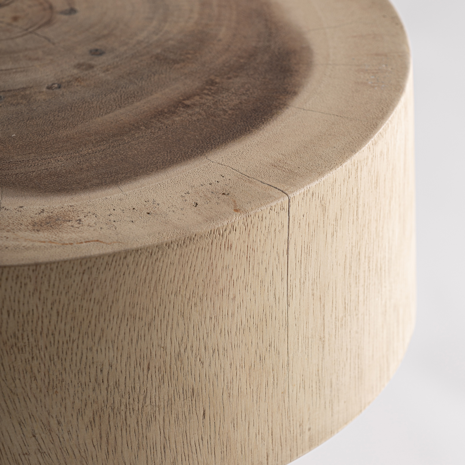 Taburete Fauch de estilo étnico fabricado en madera suar en color marrón.