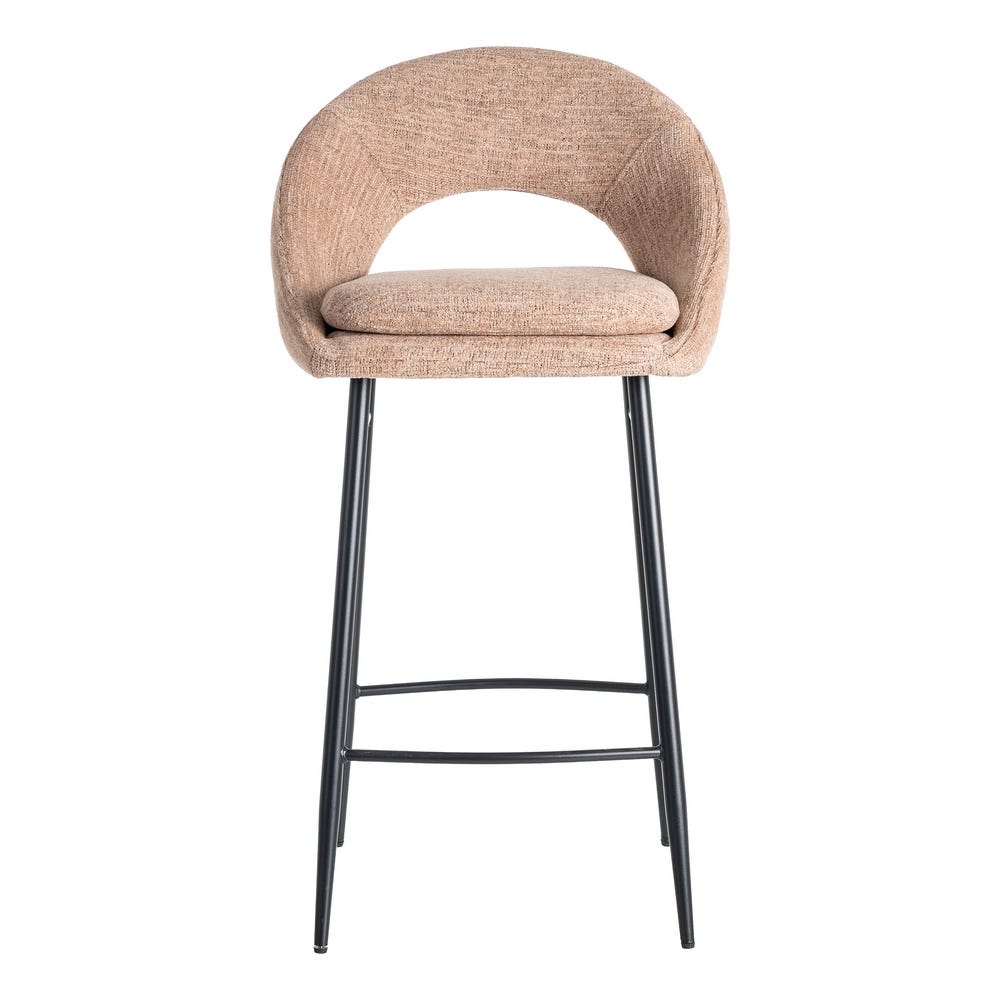 Material: tejido – metal Patas: hierro negro Tejido: 100% poliéster Gramaje: 320gr/m2 Altura asiento: 75cm. Altura respaldo: 31cm. Ancho asiento: 40cm. Profundo asiento: 40cm. Patas para montar. Cojín desenfundable con cremallera. Cumple normativa EN16139:2013