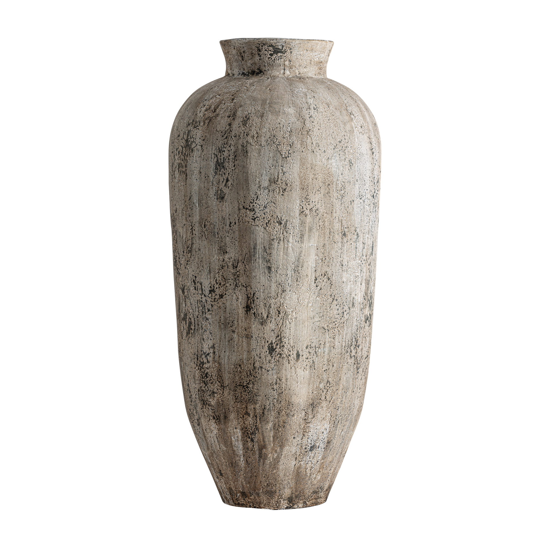 Tinaja Milaene de estilo clásico fabricado en hormigón armado en color gris con acabado envejecido.