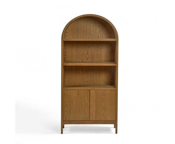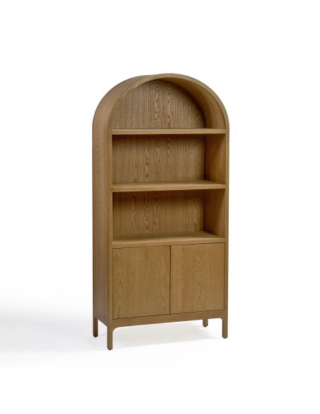 Vitrina de roble natural con puertas y parte superior redondeada