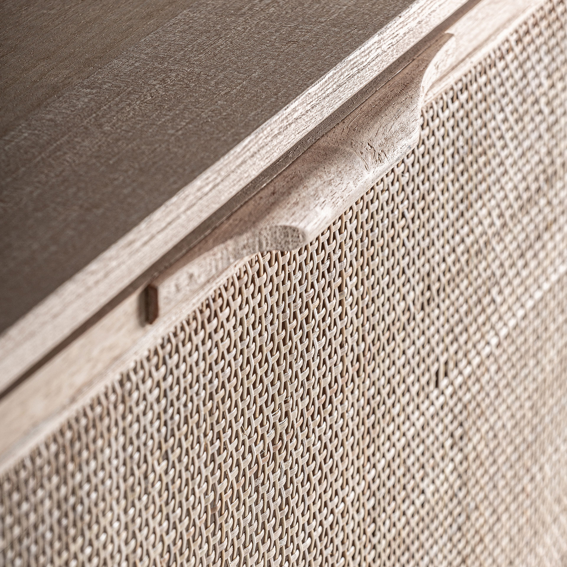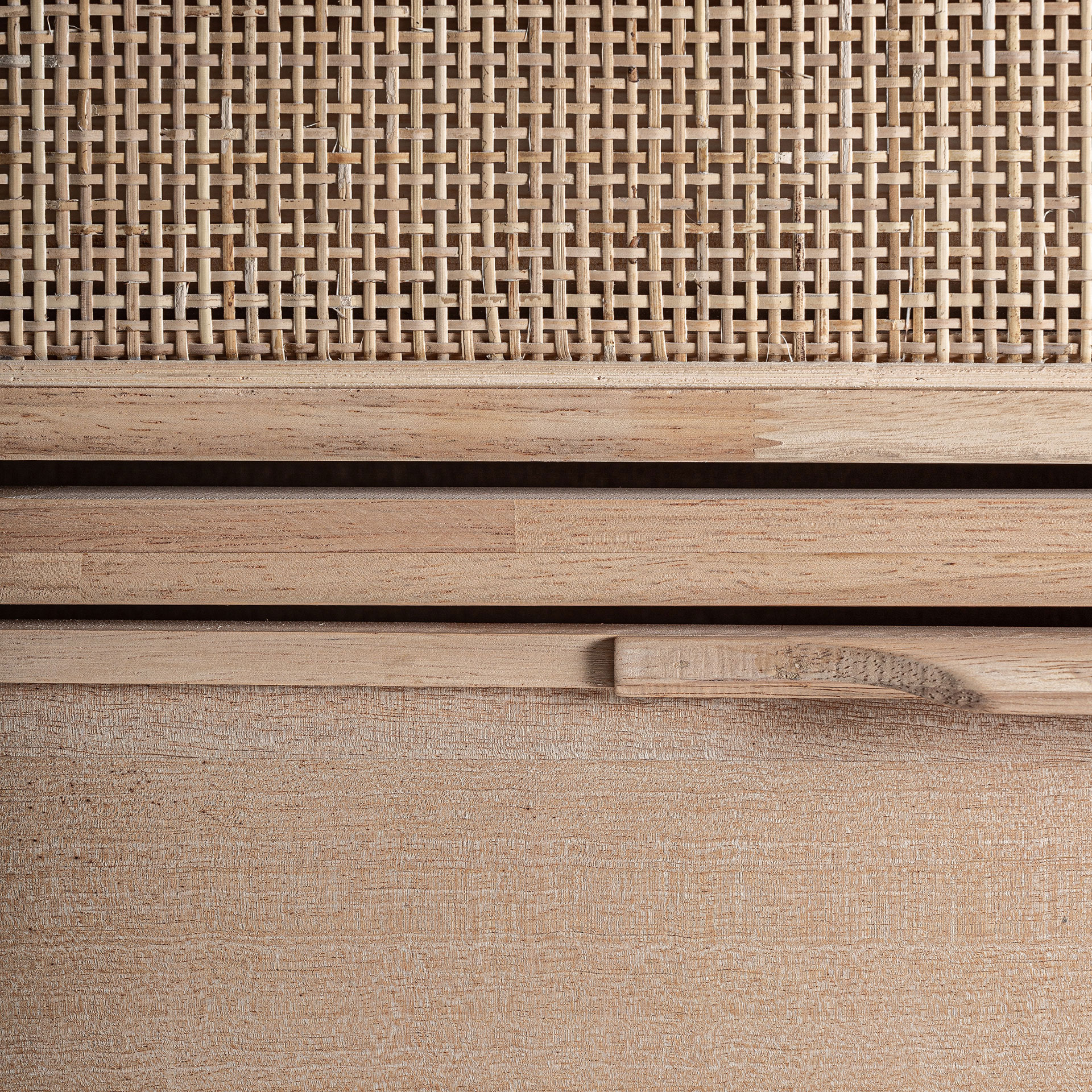 Zapatero rectangular weurtz de estilo nórdico, fabricado en madera de fresno en color marrón claro, combinado con ratán. Producto desmontable.